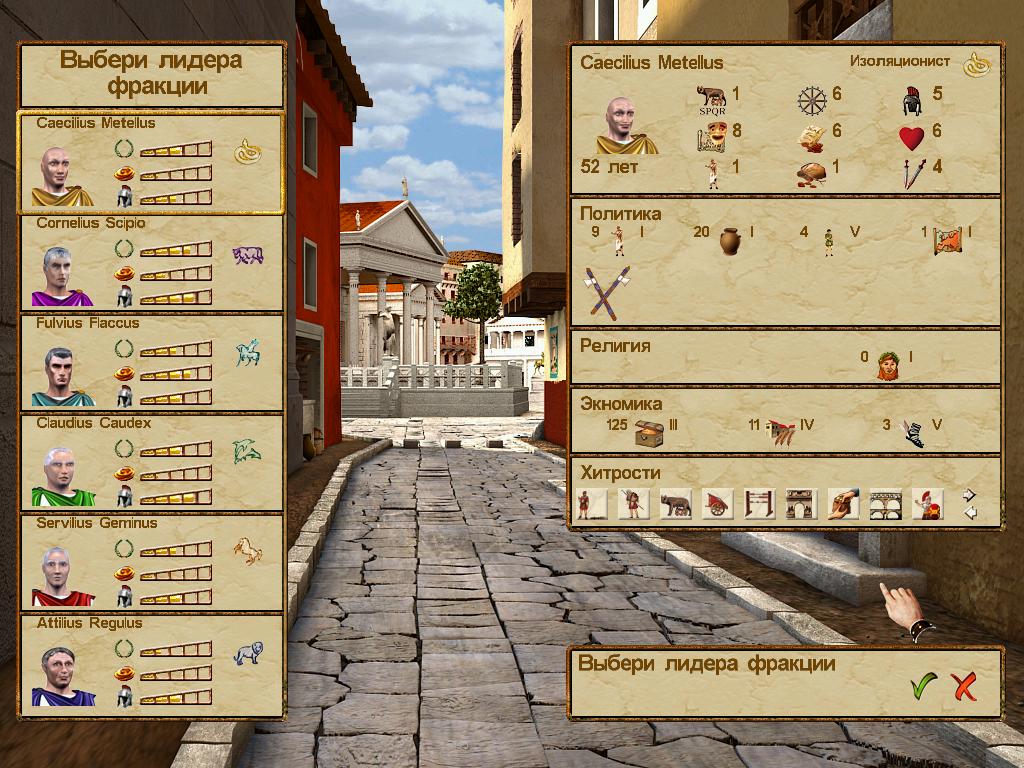 В процессе прохождения "Римская империя", геймеры ознакомятся с 6 фракциями (партиями):