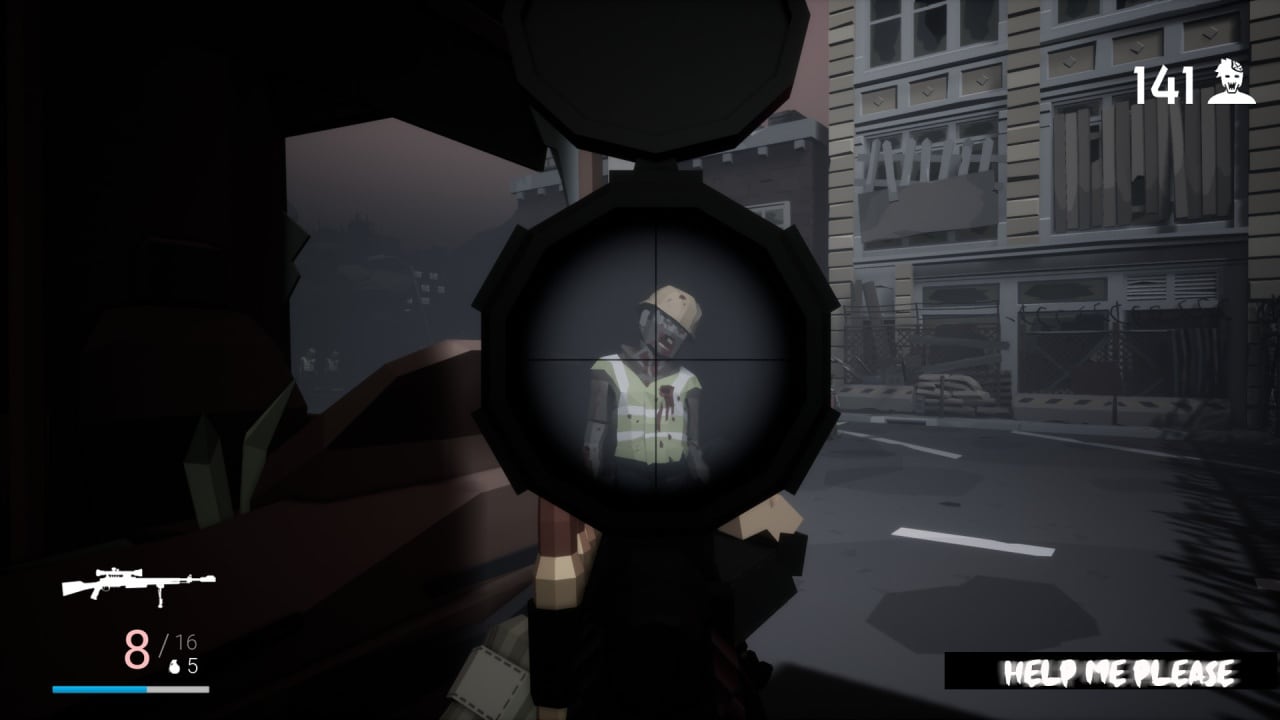 Выживание в мире Help me please дает возможность пользователям очутиться в роли человека, что оказывается в ловушке атакующих зомби. Во вселенной наступила глобальная эпидемия, из-за которой большинство граждан начали превращаться в жутких тварей. Геймеры берут под управление героя, что вынужден сопротивляться постоянно возрождающимся мертвецам, которые чувствуют живую плоть и перемещаются за протагонистом. У выжившего нет времени для отдыха и ему приходится постоянно находиться в движении.