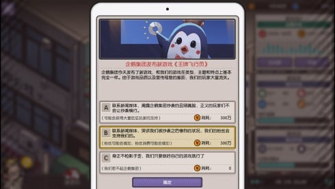Продвигаясь по сюжетной линии придется часто сталкиваться со случайными, генерирующимися событиями. Реакция на происходящие ситуации будет сказываться на развитии компании, а также на успешности созданных видеоигр. Юзерам предстоит ознакомиться с деловой культурой, что разделена на 4 области: оригинальность (плагиат против творчества), качество (ориентация на рекламу против состояния продукта), бизнес-модель (разовая покупка или микротранзакции) и политика в отношении сотрудников (требование сверхурочной работы или предоставление свободы).
