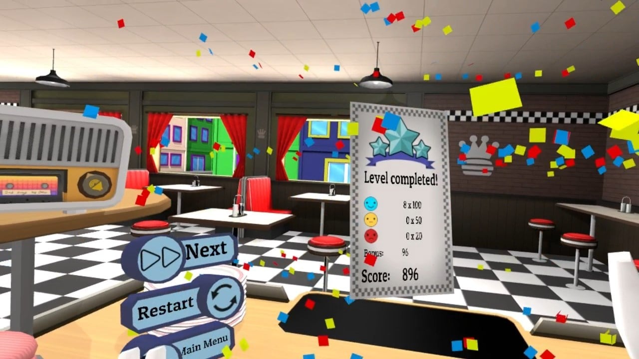 VR The Diner Duo Полная версия Последняя Дата выхода 2 ноя. 2016 Разработчик Whirlybird Games Жанр Инди, Симуляторы Очень положительные на основе 424 обзоров в Steam 95% Обновлено 26 января 2025, 09:03 Список изменений VR The Diner Duo перевоплощает играющего в первоклассного шеф-повара, работающего в закусочной, где предстоит удовлетворять потребности клиентов в красивой и вкусной еде. Проходить задания можно как в одиночку, так и в компании друга через кооператив, где разделив ответственность необходимо быстрее проворачивать все этапы приготовления. Второй игрок может выйти в зал, и принимать заказы за столиками юнитов и пытаться в устной форме передать, что же именно они хотят напарнику. Все прохождение характеризуется хаотичностью и весельем, при этом, игра проверит крепость отношений геймеров и количество терпения друг к другу. Порог вхождения небольшой, так как первые уровни легкие и больше направлены на обучение, чем на челлендж. Про что уже не скажешь о последующих, где сложность будет постепенно нарастать, добавляя новые рецепты и увеличивая количество одновременных заданий. Управление интуитивно понятное, к нему быстро привыкаешь. Для VR-любителей осуществляется с помощью контроллера и захвата движения, но можно использовать и клавиатуру с мышью для ПК-плеера в режиме локальной игры. Основные обязанности повара в VR The Diner Duo заключаются в оформлении заказов, нарезке овощей, прожарки котлет на гриле, отделении шапочек от ножек грибов, собирании бургеров, с обязательным использованием соусов и выдача готовых блюд. Если хоть один ингредиент, даже самый незначительный, будет пропущен или неправильно подобран – заказчик не примет выдачу и с недовольным лицом будет сидеть и ждать нужное блюдо, пока персонаж в поте лица мечется по кухне, стараясь все переделать. Скачать торрент Скриншоты Показать больше Видео из игры Скачать VR The Diner Duo Тип релиза Пиратка (Таблетка: Не Требуется) Версия (Полная) Последняя Размер 148.65 МБ Интерфейс Английский Озвучка Отсутствует Скачать .torrent торрент файл Скачать БЕЗ торрента прямая ссылка через uTorria Системные требования ОС: 7, 8, 10 Процессор: Intel i5 Оперативная память: 8 ГБ Видеокарта: GTX 970 VR, Казуальная, Кулинария