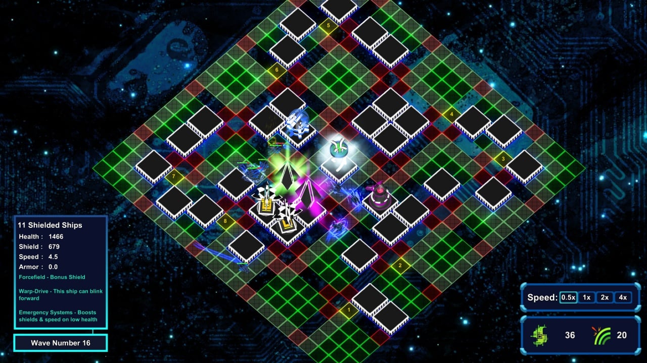 Electromaze Tower Defense Дата выхода 31 янв. 2018 Разработчик Baronnerie Games Жанр Стратегии, Инди В основном положительные на основе 34 обзоров в Steam 74% Торрент ожидается Добавьте в избранное, чтобы следить Electromaze Tower Defense, как понятно из названия, относится к жанру TD. В этой игре позволяют не только строить башни вдоль пути следования противников. Здесь можно создавать сами лабиринты, по которым будут двигаться недруги к чекпоинтам. Помимо этого тайтл может похвастать высокой реиграбельностью за счет процедурно сгенерированных карт. В Electromaze Tower Defense есть 3 режима: обучение, серия испытаний и бесконечный этап. Доступно 14 разновидностей башен, что поделены на 4 типа. Для каждого оборонительного сооружения существует по 5 улучшений. Сначала пользователь прокачивает определенную постройку до третьего уровня. А на четвертом левеле ему предлагают выбрать один из двух апгрейдов. Помимо этого можно усиливать строения аурами, что дают прибавку к урону или увеличивают радиус поражения. Игровой процесс можно ускорять и замедлять. Его смысл заключается в том, чтобы отразить вражеский натиск. Есть простые недруги и боссы. Супостаты атакуют волнами. С каждым раундом эти машины открывают новые способности. К примеру, умение телепортироваться на короткие дистанции, навык лечения союзников или даже призыв дополнительной техники. Боевые единицы с помощью этих и других скиллов могут пробить брешь в выстроенной юзером защите и вынудить его искать другую тактику для победы. Скачать торрент Скриншоты Показать больше Видео из игры Скачать БЕЗ торрента прямая ссылка через uTorria Системные требования ОС: 7, 8, 10 Процессор: 2.2GHz Оперативная память: 4 ГБ Видеокарта: 512 МБ Место на диске: 200 МБ Казуальная, Tower Defense, Строительство базы, Строительство, Цветастая, Минимализм, Для всей семьи, Научная фантастика, Космос, Будущее, Перемещение по сетке, Управление ресурсами