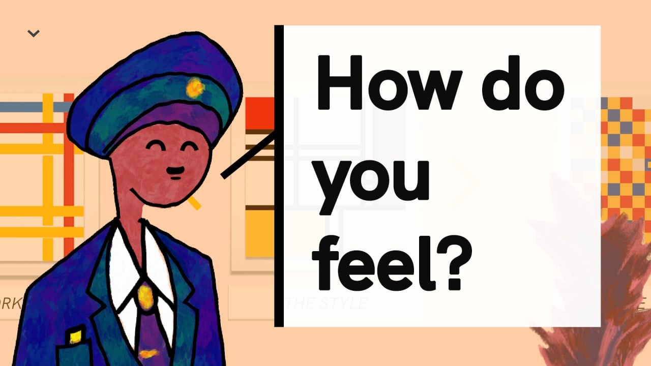 Главный герой посещает картинную выставку, где показаны самые известные картины одного художника, рисующего в стиле абстракции. В отличие от других экспонатов, данные произведения можно свободно трогать. Ведь автор хочет донести, что понять произведение не всегда можно только через визуальное восприятие. Иногда нужно прикоснуться к холсту, чтобы ощутить его силу и энергию. Протагонист ищет собственную гармонию и когда он касается этих рамок, то понимает, что находит ее именно здесь, в контакте с картинами.Типы головоломок в Плис, Тач зе Артворк: