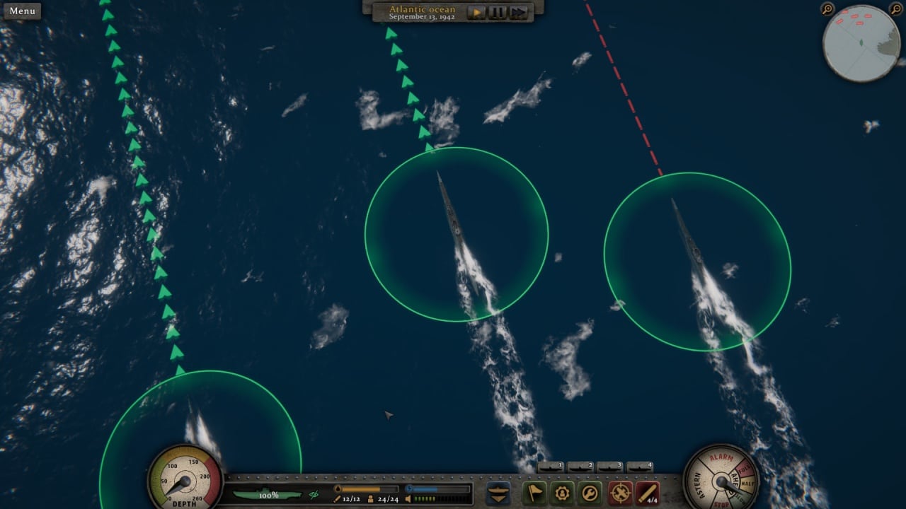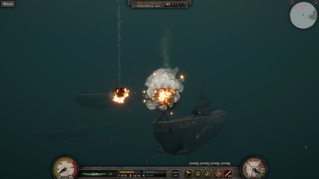 Каждая миссия в Uboat Commander начинается с разметки на карте, где заранее видно расположение флота противника. Выделив нужные лодки, можно направить их на конкретные объекты противника. Когда агрегаты придут в движение, можно переместиться непосредственно внутрь каждого объекта, чтобы подготовиться к столкновению. Например, выбрать тип снарядов в торпедном отсеке, после чего перейти к наблюдению из контрольной каюты. В этом случае система сменит вид камеры таким образом, чтобы игроки наблюдали за противником через перископ. Из этого положения можно автоматически перейти в боевой режим, выпустив первые торпеды. При успешном попадании индикаторы над вражескими судами сразу изменятся, и можно будет отследить их состояние после каждого выпущенного снаряда. Если цель имеет особый статус, для её защиты могут быть задействованы дополнительные силы (например, истребители). Поэтому, стоит помнить о потенциальной угрозе и быть готовым взять под контроль конкретную лодку. Но все не так плохо, ведь в определенных ситуациях можно самостоятельно позвать на помощь, отправив зашифрованное сообщение.