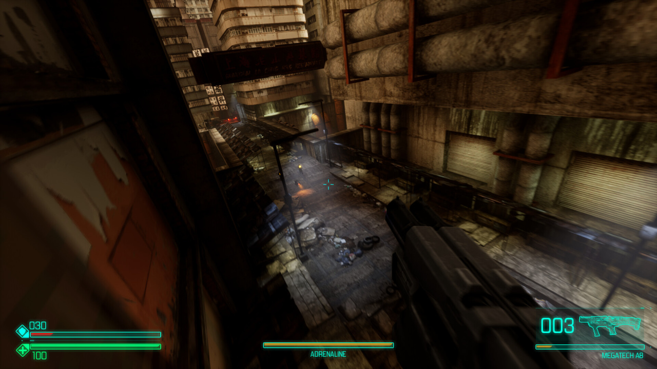 Герой в СПРАВЛ будет прорываться через толпы вооруженных солдат, чтобы добраться до верхнего шпиля, где находится правительственные комнаты. Придется пробиваться с боем, продвигаясь через переулки и полуразрушенные квартиры, где необходимо часто полагаться на навыки паркура. У протагониста есть имплантат "Икар", позволяющий делать акробатические трюки, маневрировать и бегать по стенам, а также совершать длинные прыжки, преодолевая глубокие ущелья на локациях. При убийстве противников, персонаж будет заряжать и усиливать способности своего имплантата, что вынуждает целенаправленно уничтожать военных. За протагонистом будет охотиться полиция и офицеры, что применяют огнестрельное оружие. У героя есть навык, что позволит замедлять время и ловко уклоняться от вражеских пуль, точно выцеливая своих жертв из пистолетов или автоматов.