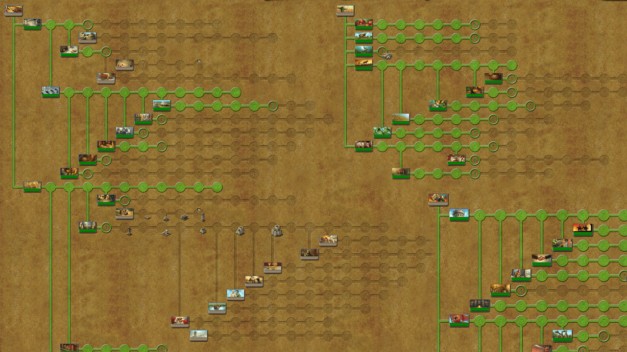 Здания тут сроятся долго. Порой этот процесс может длиться 20 минут. Скорость постройки можно увеличить с помощью исследования технологий. Эта же функция дает возможность открыть новые виды домов и увеличить силу воинов. Ветвистое дерево позволяет изучить более 700 улучшений.