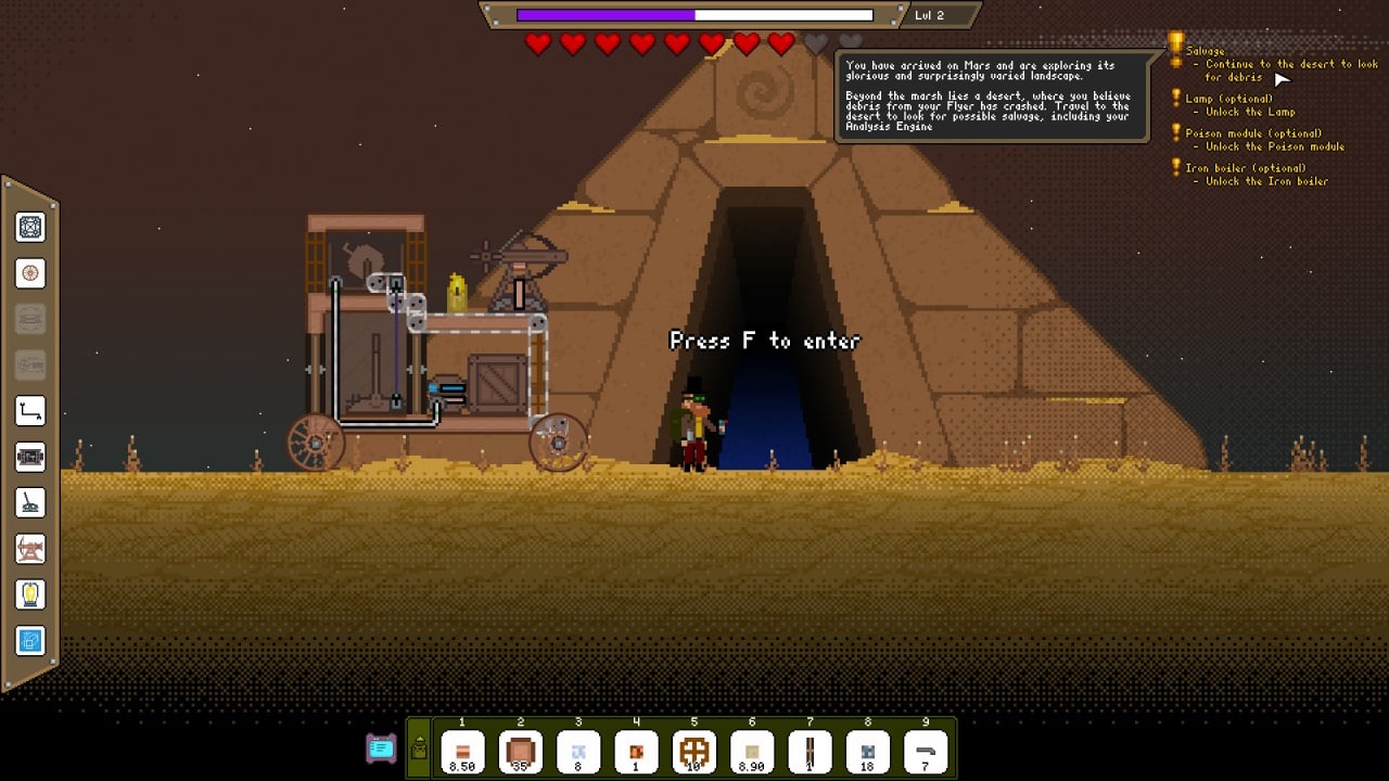 Mechanic Miner v 1.0.1 Новая версия Полная версия Последняя Дата выхода 20 фев. 2020 Разработчик Hello John Жанр Инди, Экшены, Приключения, Симуляторы, RPG Смешанные на основе 174 обзоров в Steam 53% Обновлено 26 января 2025, 06:36 Список изменений Авантюры в Mechanic Miner позволяют игрокам очутиться в сеттинге стимпанка, выполненного в пиксельной графике. Игра является экшен-песочницей, где юзеры будут заниматься строительством разнообразных машин и технологий, используя для этого широкую систему крафта. Пользователи смогут проверить свои навыки в создании механизированного транспорта, что будет помогать герою передвигаться через опасный мир, наполненный огромными монстрами. Главной задачей в Механик Минер становится выживание в дикой среде. Предстоит обеспечивать защиту для персонажа за счет креативного взаимодействия с окружающей средой. Юзеры получают возможность спроектировать любую машину, где каждый объект на карте взаимосвязан и зависит от физики. Придется собирать ресурсы, убивать противников, приобретать новые наработки и чертежи, а также использовать воображение для создания уникальной техники. Выйдет применять более 70 деталей и строительных блоков. Протагонист оказывается на странной и коварной планете, где находятся жуткие растения и существа, что агрессивно настроены против людей. Герой является гением-механиком, что обладает многофункциональным инструментом, позволяющим делать любые компоненты для транспорта, при наличии необходимого сырья. Игрокам предстоит изучать локации, создавая технику на паровых двигателях, которую можно покрыть шипами, защитными пластинами и т.п. Пользователи смогут сделать оружие, катапульты, подводные лодки, воздушные шары, дирижабли и гигантского механического паука, что будет передвигаться за счет опорных лапок. В игре присутствует "творческий режим", что снимает ограничения, а также "сюжетная кампания" и "выживание". Карты будут генерироваться случайным образом, создавая уникальные биомы и проживающих в них врагов. Периодически будут происходить эфирные бури, что сеют хаос на планете и вынуждают искать укрытия. Скачать торрент Скриншоты Видео из игры Скачать Mechanic Miner Тип релиза Пиратка (Таблетка: Не Требуется) Версия v 1.0.1 (Полная) Последняя Размер 321 МБ Интерфейс Английский Озвучка Отсутствует Скачать .torrent торрент файл Скачать БЕЗ торрента прямая ссылка через uTorria Системные требования ОС: 7, 8, 10 (64-bit) Процессор: Intel Core i3 (2.4 ГГц) Оперативная память: 4 ГБ Видеокарта: Nvidia GeForce 400 series / AMD Radeon HD 5000 Series Место на диске: 400 МБ Строительство, Крафтинг, Песочница, Пиксельная графика, Олдскул, Стимпанк, Ретро, Наука, Гонки на выживание, Стилизация, Игры в 2D, Физика, 2D-Платформер, Управление ресурсами