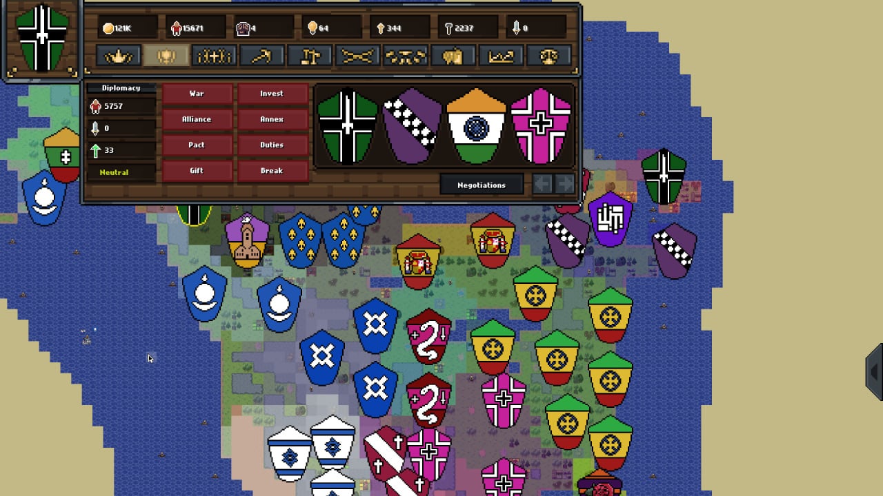 Kingdom's Life RUS v 2.0 Новая версия Полная версия Последняя в альт. раздачах Дата выхода 28 фев. 2022 Разработчик Strudio Company Жанр Стратегии, Симуляторы, Инди Смешанные на основе 224 обзоров в Steam 64% Обновлено 26 января 2025, 14:07 Список изменений Kingdom's Life – глобальная стратегия, которая выполнена в пиксельном стиле. Игроку предстоит создать и управлять собственным королевством на огромном континенте. Сначала предстоит выбрать эмблему и цвета, а потом приниматься за полноценное развитие. Всего здесь доступны три вида победы. Экономическое предполагает тотальное доминирование на рынке, обладание огромным запасом ресурсов, генерировать колоссальные суммы денег во время сделок и подкупать соперников. Политическое превосходство предполагает заключение мощных союзов, принятие слова верности от вассалов и укрепление своей власти через дипломатию. Технологическая победа предполагает стремительное культурное развитие и опережение своих соседей в развитии сельского хозяйства, горного дела и других ремеслах. И последнее условие выигрыша – военная. Здесь все просто и необходимо покорить окрестные земли про помощи огня и мечей, но для этого потребуется подготовленная и большая армия. Геймплей здесь будет состоять из макроменеджемента на глобальной карте. Король будет принимать законы, соответствующие стилю правления. Они будут влиять на эффективность добычи ресурсов, моральный дух войск, а также радость населения. Не получится бездумно подписывать множество указов и просто ждать финала. Необходимо будет приспосабливаться к политической ситуации и носить коррективы в свою тактику. Не менее важным будет заключать торговые договоренности и временные военные альянсы. Это поможет объединиться и победить мощного врага. Никто потом не запрещать вступить в двойную игру и напасть на бывшего союзника. Все решения здесь остаются на выбор геймера. Скачать торрент Скриншоты Показать больше Видео из игры Скачать Kingdom's Life Тип релиза Лицензия GOG (Таблетка: Не требуется) Версия v 1.1.2 (61387) Размер 208 МБ Интерфейс Русский Озвучка Отсутствует Дополнительный контент: Примечание Более актуальная версия: v 2.0находится в блоке - Альтернативные раздачи. Скачать .torrent торрент файл Скачать БЕЗ торрента прямая ссылка через uTorria Альтернативные раздачи Торренты Пиратка (Таблетка: Не требуется) v 2.0 81.4 МБ Скачать Прямые ссылки GOG версия (Без DRM) v 1.1.2 208 МБ Показать Системные требования ОС: Windows 7, 8, 10 (64 бита) Процессор: 2.4 GHz Оперативная память: 4 ГБ Видеокарта: 1 ГБ Место на диске: 300 МБ Глобальные стратегии, Песочница, Военные конфликты, Политический симулятор, Пошаговая тактика, Пиксельная графика, Игры в 2D, Война, Историческая, Средневековье, Экономика, Бой, Пошаговые сражения, Казуальная, Градостроение
