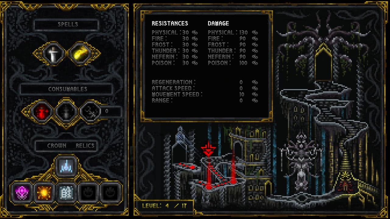 - При смерти улучшать героя, потратив очки Bloodtree, меняя стратегию или билд.