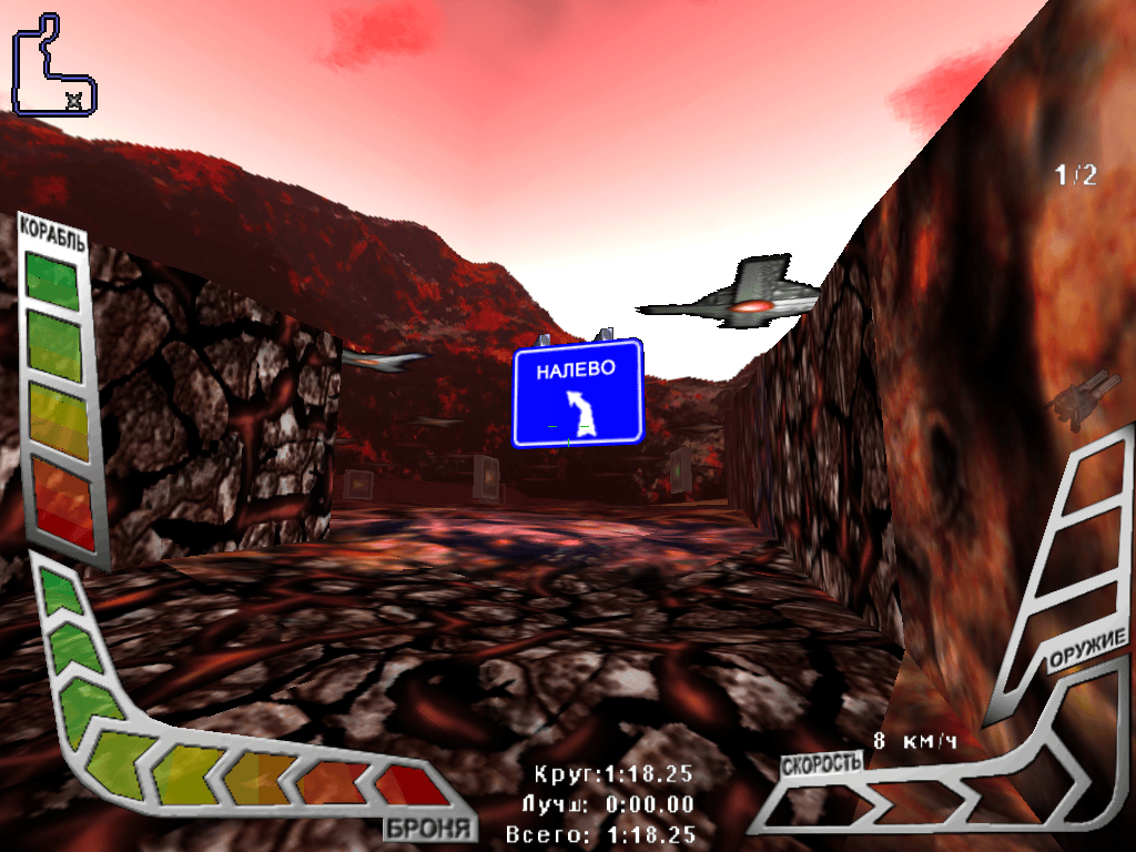 Перед началом кампании в Battle Race 3D можно выбрать персонажа, который будет участвовать в заездах. Для каждого героя представлен индивидуальный профиль с полным описанием личности. После этого, можно выбрать корабль, а также сам трек. Его дизайн хоть и останется неизменным, количество поворотов и сегментов с открытым пространством может меняться. Что касается самого процесса погони, то здесь поддерживается высокая интенсивность и скорость перемещения транспорта. Конечно, риск аварии довольно высок, но из-за ширины трека и в целом возможности перестраиваться на дистанции, можно приспособиться к такой вариации построения и не испытывать трудностей в дальнейшем. Боезапас пушек неограничен, но они довольно быстро перегреваются. За этим можно следить благодаря удобной шкале, расположенной в правом углу экрана. Как только все столбцы заполняются, это значит, что нужно выждать паузу. Но это не станет большой проблемой, если игроки будут вступать в бой только тогда, когда это действительно необходимо.