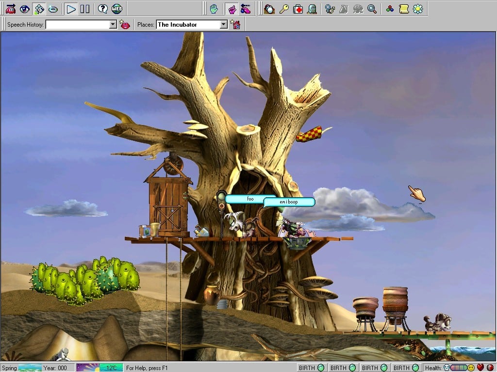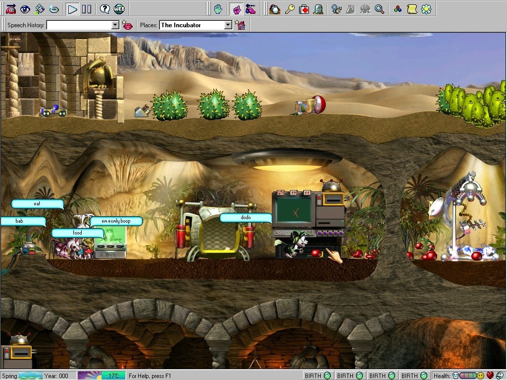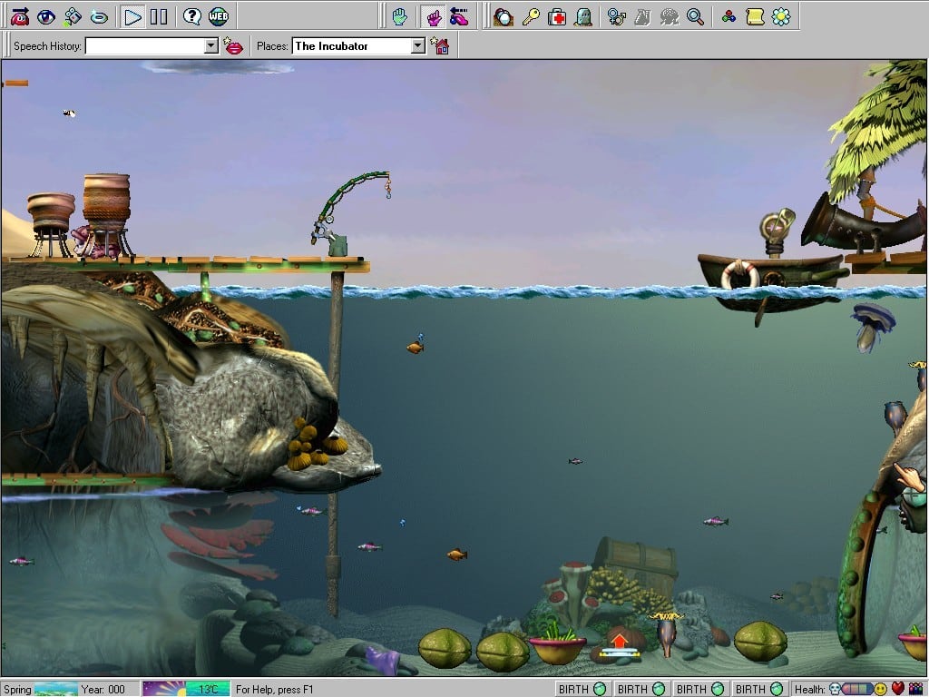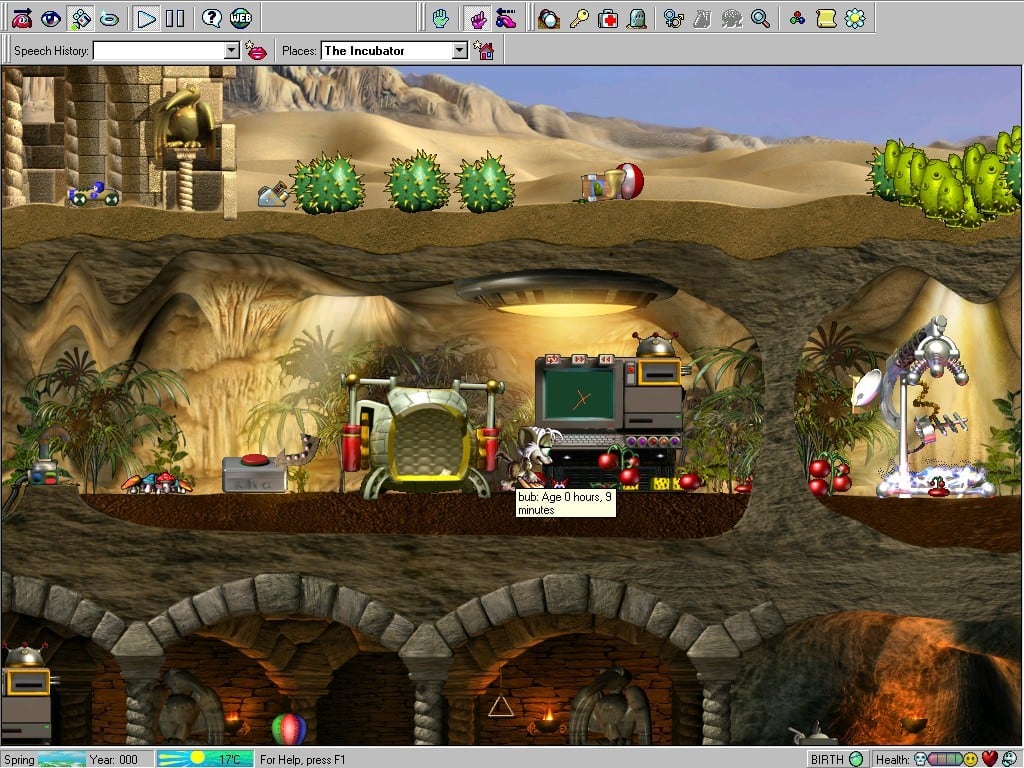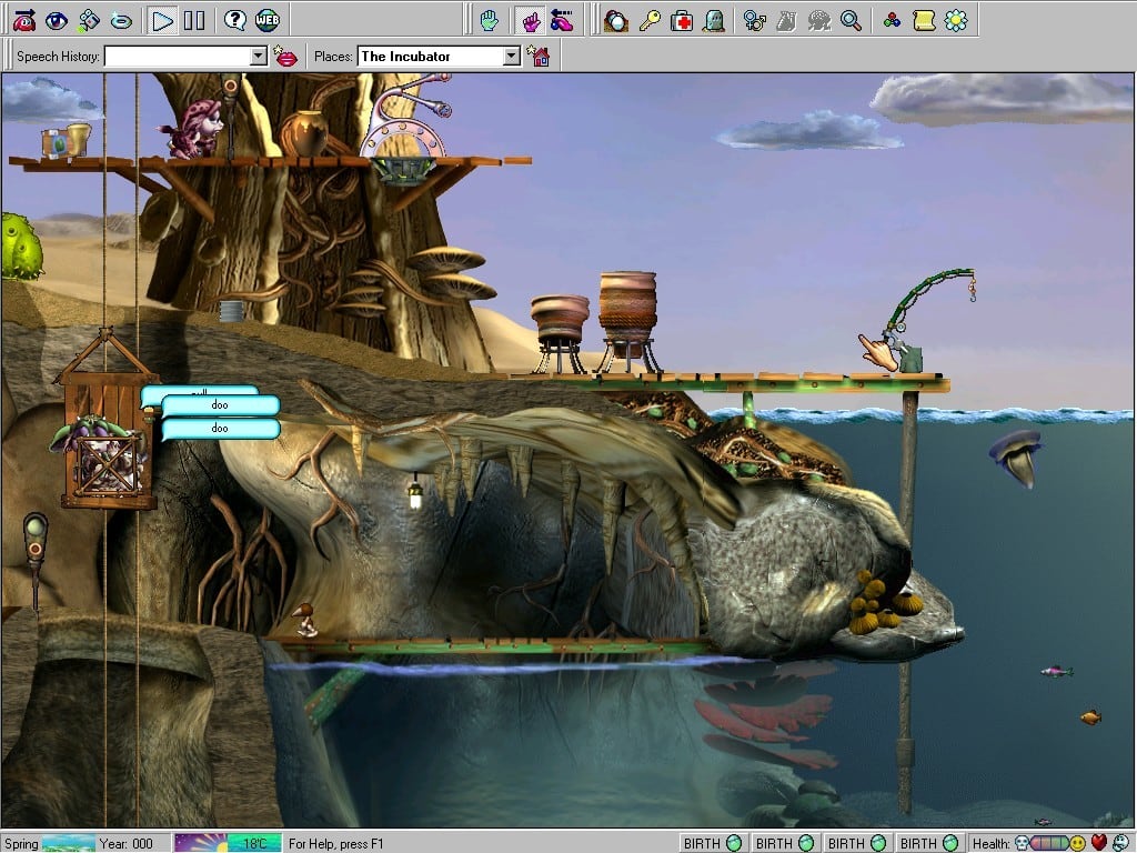 Упоминание о миниатюрном мире в Creatures 2 сделано не случайно, ведь все в буквальном смысле происходит в инкубаторе. Здесь, в ограниченном пространстве, геймерам необходимо выкармливать особей, постепенно приучивая их к элементарным действиям. Для каждого существа предусмотрены свои условия существования (например, проводить больше времени в воде, или повышенная активность), поэтому даже тот маленький участок, который выделен игроку, придется делить. Но нужно учитывать, что за пределами этой "крепости" находится живой мир, и доступ туда также можно получить. Например, через выполнение квестов, связанных с простыми механиками объектов. Нужно активировать механизм, чтобы убрать заслон и обеспечить проход, или воспользоваться лифтом ручной работы, чтобы попасть на первый этаж наземной постройки. Там также можно разместить несколько "малышей", но для этого потребуется тщательно подготовить пространство, смастерив укрытие и создав условия существования.