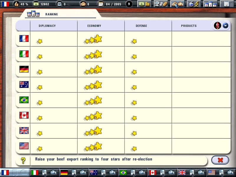 Китай, США, СССР и другие крупные игроки в Economic War Political Tycoon обладают разным запасом ресурсов. Это стоит учитывать при формировании долгосрочных целей. Это касается экономической составляющей и уровня финансирования, степень развития промышленности и прочих показателей. Что касается перечня доступных действий, то он в большей мере зависит от текущего сценария, ведь все заточено под конкретную задачу. Например, если нужно превзойти соперников по части доходов от разных сфер, можно полностью задействовать опцию торговли и реализации контрактов по сотрудничеству. Интерфейс не загромождает пространство на главном экране, за счет чего пользователям легко найти нужную функцию или получить информацию. При наведении курсора на здание, определенный участок пространства (например, военную базу), система предоставляет сведения о том, как можно использовать тот или иной объект и как это сочетается с другими схожими вещами. Но даже с учетом этого проходить отдельные сценарии довольно сложно из-за постоянных изменений. Например, у одного из конкурентов появится новый союзник, и этом сильно повлияет на его позицию в общей ситуации.