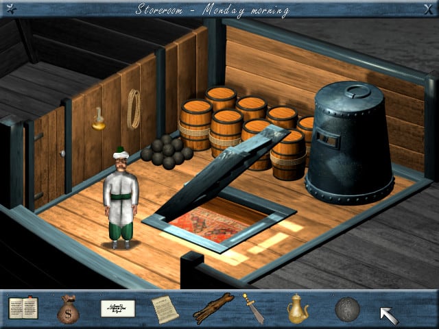 Игровой процесс Eye of the Kraken соответствует классическому квесту. Так, персонаж перемещается по ряду локаций, представляющих собой отдельные отсеки корабля (каюты, трюм, мостик, палуба и другие), выполняя конкретные задания. Плавание длится несколько дней, поэтому исполнение основной цели может затянуться. Кроме того, по ходу прохождения Абдулла общается с другими пассажирами, получая информацию о происходящем на борту, что в свою очередь помогает сформировать последовательность действий. Например, сначала необходимо отыскать определенные предметы и поместить их в инвентарь, а уже после определиться с тем, как именно следует их применять. Тот же мешочек с деньгами можно использовать неоднократно, пока монеты не подойдут к концу, а ту же отмычку или корм для птиц таким образом уже не применишь. А весь геймплей сопровождается ненавязчивой мелодией под стать происхождению главного героя и общей неспешной динамике повествования.