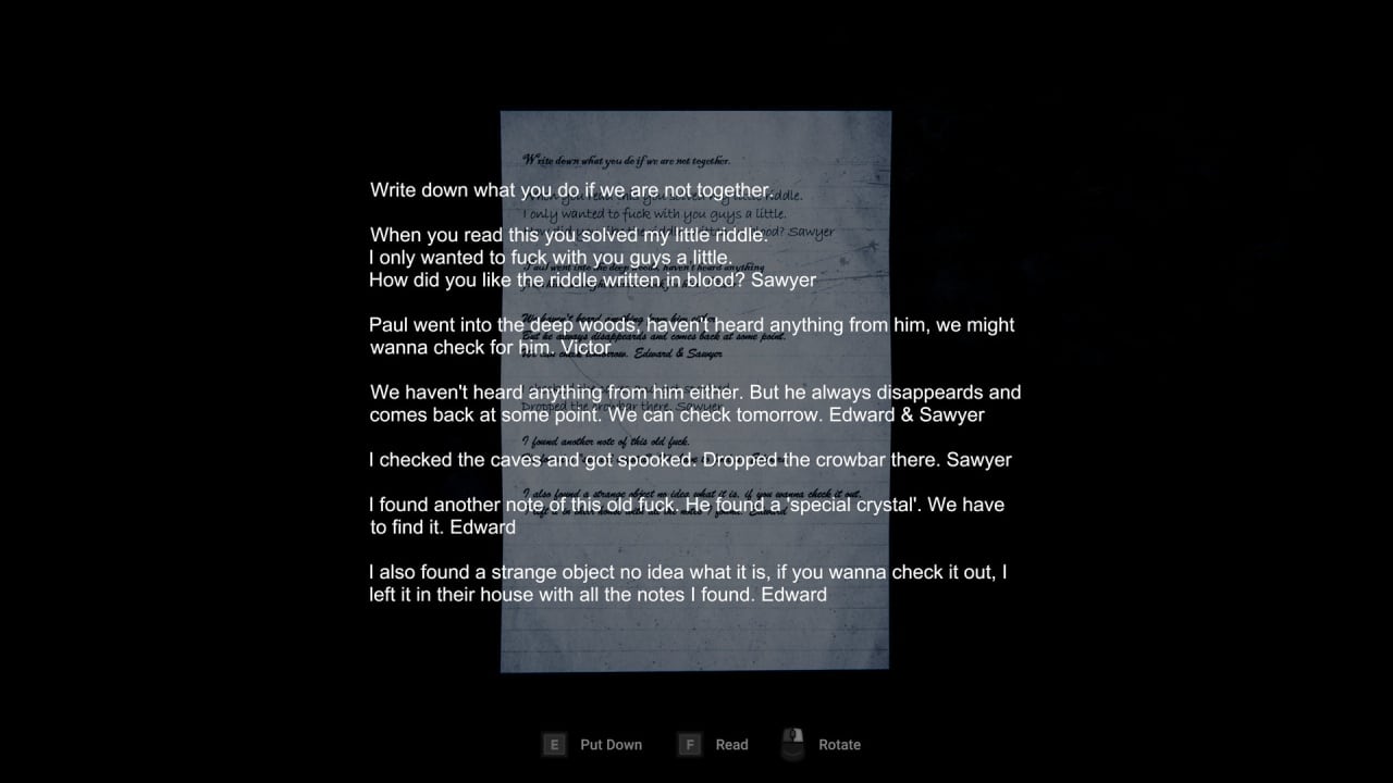 Awakened: Dark Space v 1.1c Новая версия Полная версия Последняя Дата выхода 25 фев. 2022 Разработчик Moonlore Game Studios Жанр Приключения, Инди, Выживание Обновлено 26 января 2025, 14:49 Список изменений В рамках прохождения Awakened: Dark Space геймеру придется отправиться в загадочное место под названием Хрустальный лес. Именно сюда несколько дней назад поехала подруга героя – Сара. Она, как и многие другие интересуется необычными районами, о которых годят легенды. Что касается Хрустального леса, то приблизительно 800 лет назад здесь начали происходить странные вещи, в результате которых регулярно бесследно пропадали люди. Герой не верит в мистику и не страшась ничего, отправляется на поиски подруги. Геймплей Awakened: Dark Space сводится к планомерному изучению просторных локаций: леса, заброшенных зданий, старинных шахт и подземелий. Практически всегда действия происходят в ночное время или же помещениях без света. А потому главным другом мужчины становится обычный ручной фонарик. Для прохождения по сюжетной линии пользователю необходимо решать головоломки, искать предметы, взаимодействовать с механизмами, которые блокируют путь в другие локации. Протагонист – рядовой человек, который не имеет никаких специальных боевых навыков и не умеет обращаться с оружием. По этим причинам никакой механики сражений не предусмотрено. ГГ попросту должен избегать встречи с чудовищными созданиями, которые обитают в лесу. Если же они его все-таки поймают, то определенно убьют. Смерть не является концом, так как игра перекинет к последнему чекпоинту. После возрождения становится понятым как поступить иначе, чтобы избежать смертельного исхода. Скачать торрент Скриншоты Показать больше Видео из игры Скачать Awakened: Dark Space Тип релиза Лицензия (Таблетка: Присутствует) Версия v 1.1c (Полная) Последняя Размер 6.64 ГБ Интерфейс Английский Озвучка Английская Установка: Скачать .torrent торрент файл Скачать БЕЗ торрента прямая ссылка через uTorria Системные требования ОС: Windows 10 (64-bit) Процессор: Intel Core i5-4590 / AMD Ryzen 5 1500X Оперативная память: 8 ГБ Видеокарта: NVIDIA GTX 970 / AMD Radeon R9 290 Место на диске: 12 ГБ Глубокий сюжет, Хорроры, Атмосферная, Научная фантастика, От первого лица, Насилие, Мрачная, Средневековье, Реализм, Историческая, Игры с геймпадом