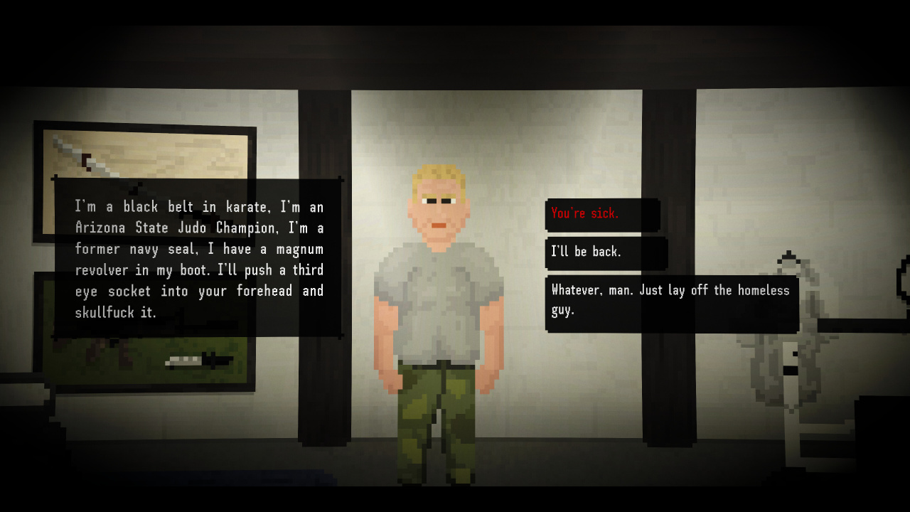 Bad Credit Полная версия Последняя Дата выхода 17 фев. 2022 Разработчик Riley Sampson Жанр RPG, Визуальная новелла, Приключения, Симуляторы Положительные на основе 20 обзоров в Steam 90% Обновлено 25 марта 2025, 17:42 Список изменений Нео-вестерн Bad Credit рассказывает о непростой ситуации в городе Тусон 2016 года. Герой собирается развивать свой бизнес, используя все возможные способы, но нагнетание обстановки, грязные игры и черные дела не дают в полной мере законно продвигаться по карьерной лестнице. Чтобы пережить надвигающийся кризис, потребуется пережить 12 месяцев, сохранить накопленный капитал, а в лучшем случае, умножить его в несколько раз, выходя в большой плюс. В Bad Credit присутствует возможность выбора политической стороны. Герой сможет примкнуть к одной из действующих партий. Стать либералом, социалистом или настоящим фашистом. Все зависит только от морали самого персонажа. Но выбор политической фракции не обязателен, он повлияет только на то, как люди будут видеть протагониста. Он может оставаться в тени, не участвуя в политической жизни страны. Визуальный роман завязан на механике выбора и развития отношений. С людьми можно ругаться, мириться, переманивать на свою сторону или избавляться самым черным способом. Герою предстоит оказаться на стороне добра или зла, только по своему усмотрению. Можно заводить новые знакомства или разрывать даже самую крепкую дружбу. Сюжет раскрывается в длинных диалогах и описаниях происходящего. Тайны жителей города всплывают на всеобщее обозрение, стоит только заняться ими. Присутствуют видеовставки в ключевых моментах. Скачать торрент Скриншоты Показать больше Видео из игры Скачать Bad Credit Тип релиза Пиратка (Таблетка: Не требуется) Версия (Полная) Последняя Размер 198 МБ Интерфейс Английский Озвучка Английская Скачать .torrent торрент файл Скачать БЕЗ торрента прямая ссылка через uTorria Системные требования ОС: Windows 10 Процессор: 2.40GHz Оперативная память: 6 ГБ ОЗУ Глубокий сюжет, Решения с последствиями, Выбери себе приключение, Point and click, Атмосферная, Чёрный юмор, Капитализм, Америка, Политический симулятор, Сатира, Историческая, Вестерн