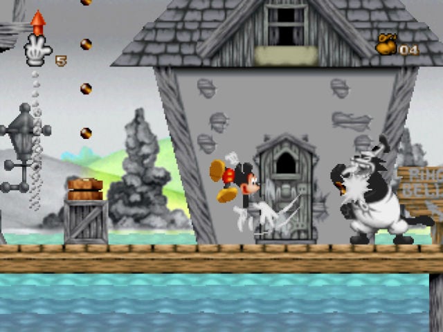 Пользователям в Mickey Mania: The Timeless Adventures of Mickey Mouse предстоит посетить разнообразные локации, что были воссозданы из мультипликационных фильмов Steamboat Willie, The Mad Doctor и Mickey and the Beanstalk. Геймеры смогут побывать на черно-белом "Пароходике Вилли" и добраться до "Похождения Императора", где придется проходить сюжетные квесты и сражаться с коварным преступником по имени Мерзкий Пит. Антагонист будет постоянно мешать мышонку и вставать у него на пути, натравливая различных разбойников и монстров.Продвигаясь через сказочный мир, игроков ожидает: