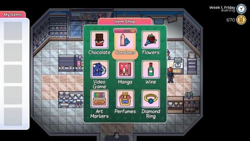 Протагонист способен вступать в сексуальные связи с любой из героинь. Чтобы увидеть ту или иную постельную сцену, потребуется совершить ряд действий с героиней. Каждая девушка имеет свои увлечения и представлена индивидуальным характером. Представлены достаточно подробные сцены секса и с каждой героиней он абсолютно разный. Но не стоит сильно увлекаться, поскольку тесты и экзамены никто не отменял. Потребуется балансировать между разными аспектами жизни, пытаясь не разрушить все и сразу. Будет непросто!