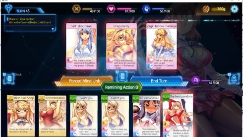 - Внушение мыслей для протагонисток ("Пандор"), применяя специальные карты для влияния на мировоззрение девушек.