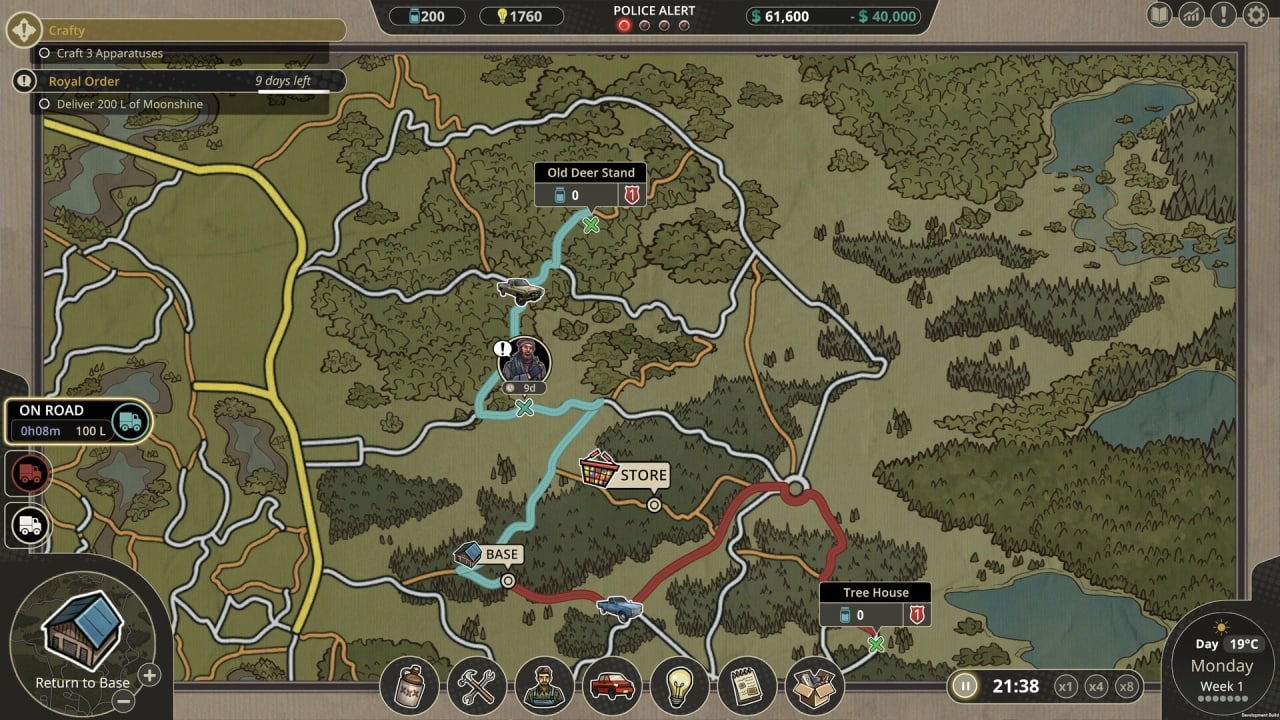 - Улучшение производства, а также сбыт товара потребителям. Придется обустраивать лагерь технологиями, что будут повышать качество ферментации и дистилляции спирта во время работы.