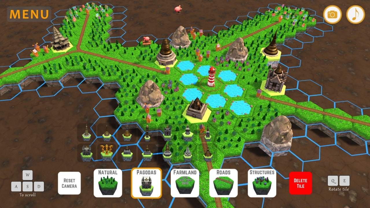 - Создавать красивые поселения, выставляя желаемые сооружения на игровом поле.