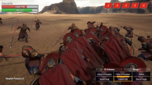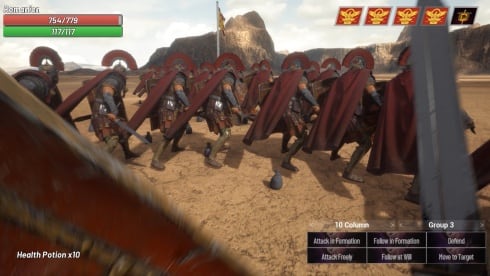 - Влияние на баталии, отдавая команды для армии в реальном времени и направляя или формируя строй легионеров.