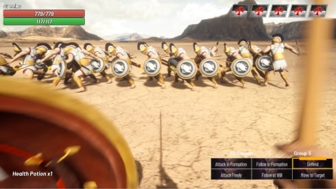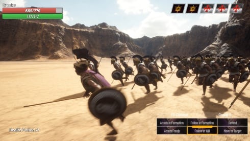Главной задачей становится победа в моделируемых матчах, где пользователям предстоит руководить войсками на поле боя и самостоятельно участвовать в сражениях. Герой сможет наносить удары, совершать блоки щитом и контратаковать противников. Игроки смогут создавать следующие формации для ударной группы: круг, квадрат, клин или линейный строй, чтобы опробовать уникальные тактические маневры или подобрать желаемый стиль прохождения.