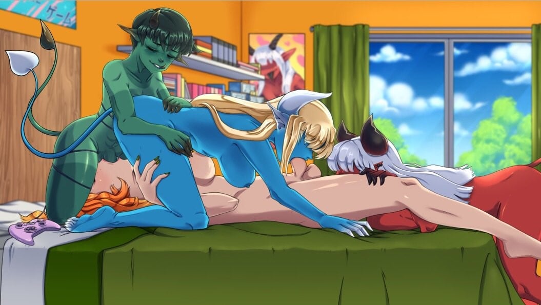 Но на этом история в игре Demons Rise Up! не заканчивается, а только начинается. Проведенная ночь оставляет неизгладимое впечатление на гостью из потустороннего мира, поэтому Лина решает устроить оргию с объектом своей страсти. Для этого она призывает в мир смертных еще трех своих половых партнерш. Зеленая демонша Норико с хвостом, симпотяшка Кайла в образе горячей школьницы и голубокожая, полуобнаженная Чоико не прочь насладиться любовными утехами и опробовать на практике все позы из Камасутры. Но для этого им необходимо отвлечь Сьюзи от джойстика и соблазнить ее. Сможет ли рыжеволосая смертная девушка с мужским достоинством в штанах противиться соблазну? Будет ли им хорошо вместе? Чем завершиться этот любовный многоугольник? Зависит от действий игрока.
