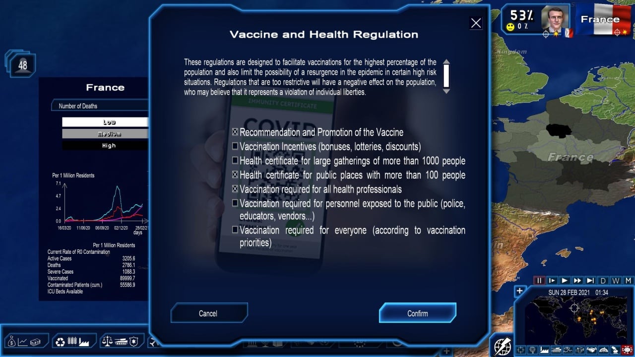В Власть и Революция выпуск 2021 понадобиться обращать внимание на экономическую, социальную, политическую и другие сферы жизни. Геймер может наблюдать за событиями, которые происходили в реальности. К примеру, военные и боевые действия, или эпидемия коронавируса. Из-за вируса экономика стран была в упадке. Поэтому потребуется заново ее возродить. Нужно придумать, как вакцинировать население, а также разработать врачебные препараты для борьбы с болезнью.