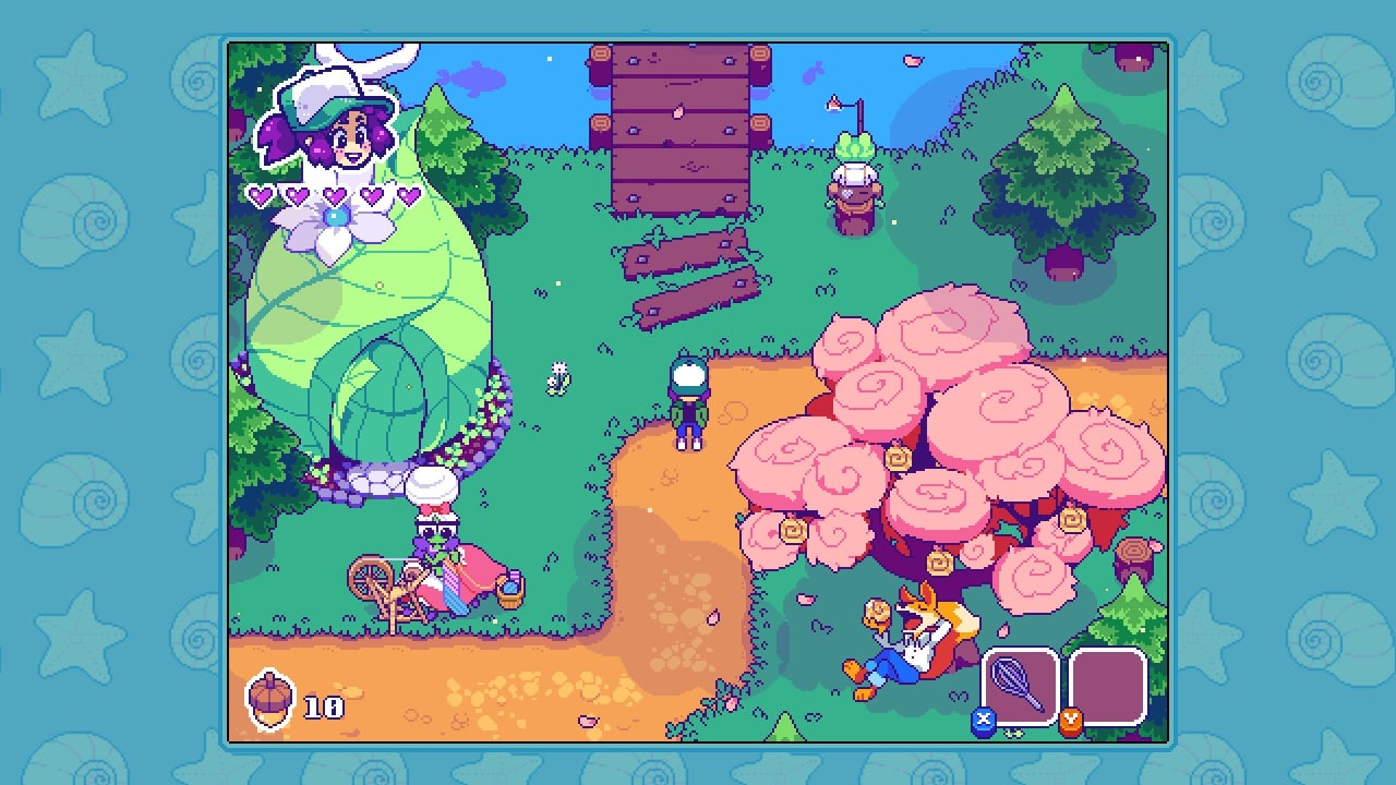 Moonshell Island Дата выхода Ещё не объявлена Разработчик Cheekynauts Entertainment Жанр Приключения, RPG, Экшены, Инди Торрент ожидается Добавьте в избранное, чтобы следить Moonshell Island сочетает в себе ролевую игру, экшен и адвенчуру. Графика в этом инди-проекте выполнена в стиле пиксель-арт, а камера расположена сверху и под углом. В игре есть смена времени суток. Юзеры управляют девушкой с фиолетовыми волосами. Она может по ночам становиться ведьмой и летать на метле. В качестве оружия ближнего боя дама использует небольшую метёлку. Также она способна пользоваться второстепенным вооружением. У неё есть небольшой инвентарь для предметов. Все вещи героиня находит на локациях либо покупает. Кроме схваток с монстрами тут надо преодолевать препятствия, болтать с местными жителями, решать головоломки и развлекаться в мини-играх. Геймплей похож на старые части Зельды. История посвящена спасению мира от существ под названием Nomsters. Остров Муншелл – это название игры и места, где разворачиваются её события. Эта изолированная территория состоит из разных биомов. Для исследования доступен частично открытый мир. В некоторые его места можно попасть, только если найти на локациях соответствующие апгрейды или продвинуться по сюжету до определенной точки. По мере исследования местности протагонистка собирает желуди. Она сражается с чудищами, готовит еду из найденных ингредиентов, помогает местным жителям и уговаривает их спрятаться в убежище под названием Crabby's Cabana Club. Чем больше островитян оказывается в этом клубе, тем больше возможностей она получает по мере прохождения. Само заведение можно украшать. Скачать торрент Скриншоты Показать больше Видео из игры Скачать БЕЗ торрента прямая ссылка через uTorria Системные требования ОС: Windows TBD Ролевой экшен, Приключенческий экшен, Пиксельная графика, Игры в 2D, Милая, Расслабляющая, Крафтинг, Кулинария, Протагонистка, Природа, Цветастая, Глубокий сюжет, Решения с последствиями, Строительство базы, Магия, Смешная, Игры с геймпадом