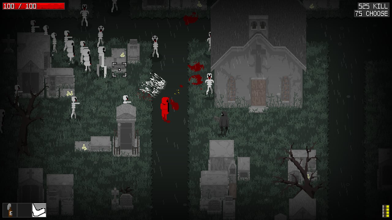 Ponchoman смешивает в себе арена-шутер и упрощенный рогалик. Камера в этой игре расположена сверху и под углом. У неё двухмерная графика в стиле пиксель-арт. Это небольшой инди-тайтл. В нём доступен один вид развлечения – бесконечный режим. Его смысл состоит в том, чтобы продержаться как можно дольше, ликвидировав побольше монстров. Рано или поздно стрелок погибнет под натиском супостатов, и тогда придется начинать всё заново. В награду за убийство недругов дают доступ к апгрейдам. Чем больше врагов убьет протагонист, тем сильнее усилит оружие. Однако в случае его гибели все улучшения слетают. Можно прокачать пробивную силу, установить оптический прицел, сменить тип стрельбы с одиночного на полуавтоматический и так далее.