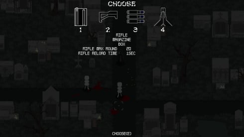 Пончомен – это не только название игры, но и имя протагониста. Так зовут вооруженного дробовиком мужчину в пончо. Он бродит по кладбищу и отстреливает толпы нежити. Герой может ходить в нескольких направлениях, стрелять, перезаряжать пушку, делать рывок и молиться. Управляется он при помощи клавиатуры и мыши. Ствол у персонажа пятизарядный. Чем больше пуль было выпущено по противникам, тем дольше будет длиться процесс перезарядки. У путника имеется шкала здоровья, что уменьшается каждый раз, когда зомби, призраки и другие существа атакуют его в ближнем бою. Полоска HP не восстанавливается. В конце забега подсчитывается общее количество убийств и затраченное время.