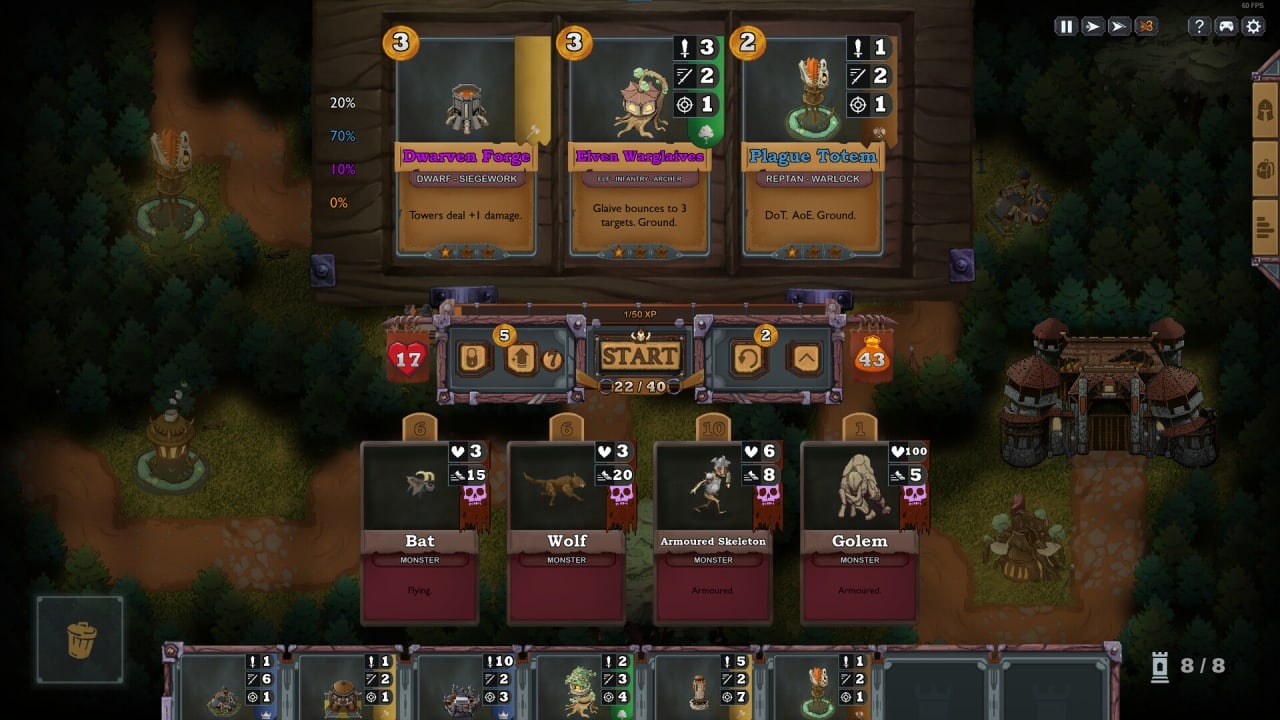 Особое улучшение можно получить в том случае, если построить в ряд три башни одного типа. Турели подлежат улучшению. Апргрейды позволяют разработать уникальную тактику. Игроки в индивидуальном порядке адаптируют игровой процесс под свою тактику и индивидуальный ритм. Можно создавать синергию при помощи уникальных предметов. Особую роль в геймплее играет сбор ресурсов и золота. Деньги выпадают из поверженных врагов, а остальные ресурсы можно отыскать на локациях. Грамотно управляя экономикой, можно построить мощное королевство, которое даст отпор огромной армии монстров.