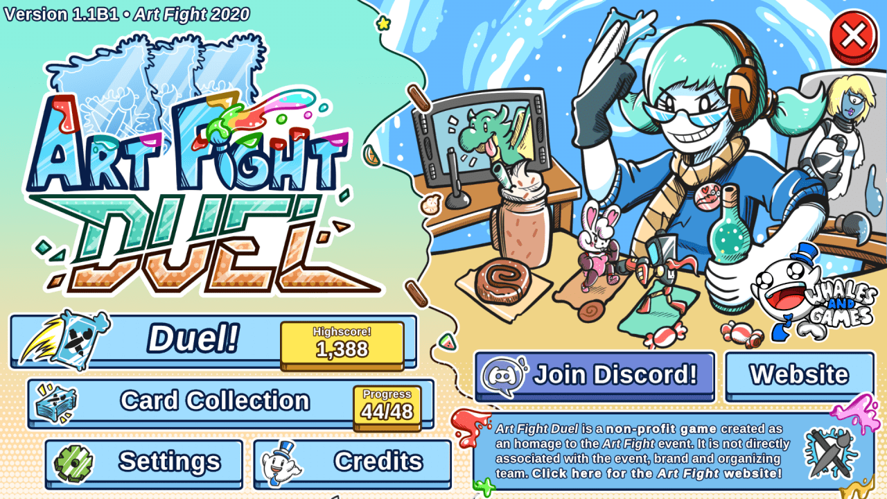 Art Fight Duel v 1.1B1 Новая версия Полная версия Последняя Дата выхода 2020 Разработчик Whales And Games Жанр Инди, Стратегии Обновлено 26 января 2025, 05:28 Список изменений Art Fight Duel представляет собой карточную игру. В отличие от многих других продуктов, в ней не нужно собирать колоду. Устраивать поединки можно только с ботами. Суть геймплея состоит в том, чтобы уничтожить как можно больше врагов, сражаясь с их бесконечными волнами. Сложность постепенно возрастает. Матч заканчивается, когда время иссякает. После этого происходит подсчет очков. Игровой процесс в Art Fight Duel выглядит следующим образом. Пользователь наблюдает за происходящим сбоку. На поле есть 8 ячеек для размещения персонажей – по 4 для юзера и его компьютерного оппонента. С помощью карт юзер и его управляемый ИИ соперник расставляют существ. Они сами выясняют отношения в реальном времени. Своих подопечных можно лечить, усиливать баффами, добавлять им броню. Это всё тоже делается путем использования карточек.Это небольшой проект, сделанный, чтобы выразить дань уважения популярному в западном сегменте интернета мероприятию художников. Поэтому в нем немного контента. Здесь нет обучения, сюжета, кампании и других режимов. Всего в игре 24 карты поддержки и такое же количество карточек с юнитами, что обладают своими сильными и слабыми сторонами, а также имеют дополнительные умения. Система прогрессии отсутствует. Дополнительные предметы по мере прохождения не открываются. Скачать торрент Скриншоты Видео из игры Скачать Art Fight Duel Тип релиза Пиратка (Таблетка: Не Требуется) Версия v 1.1B1 (Полная) Последняя Размер 49.20 МБ Интерфейс Английский Озвучка Отсутствует Установка: Скачать .torrent торрент файл Скачать БЕЗ торрента прямая ссылка через uTorria Системные требования ОС: Windows XP, Vista, 7, 8, 10 Процессор: 2 GHz - Dual Core Оперативная память: 1.5 ГБ Видеокарта: HD Graphics 4000 Карточная игра