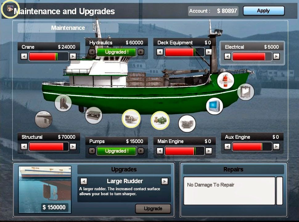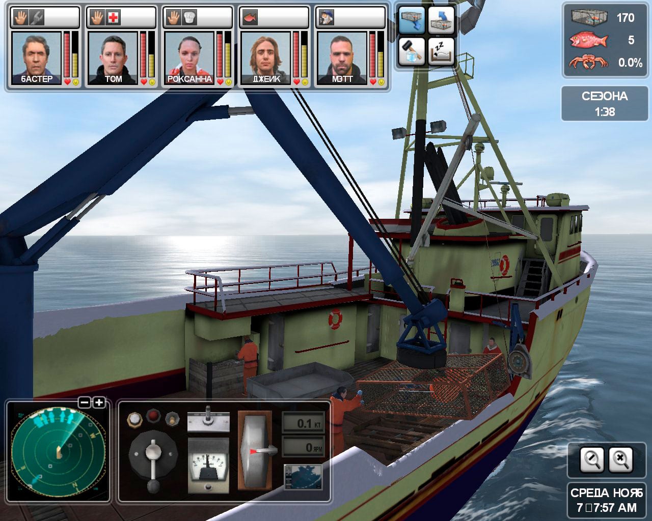 Deadliest Catch: Alaskan Storm RUS Полная версия Последняя Дата выхода 2008 Разработчик Liquid Dragon Studio / Greenwave Жанр Приключения, Симуляторы Обновлено 24 марта 2025, 23:55 Список изменений Deadliest Catch: Alaskan Storm – симулятор управления рыболовецким судном, где предстоит отправиться на охоту за рыбой в океан. Геймеру предстоит взять на себя руководство командой и кораблем, которые занимаются поставками морепродуктов в ближайший порт. Моряки отправляются за горизонт не для того, чтобы расслабленно забрасывать спиннинг и дать клева. Тут все будет происходить в промышленных масштабах. Протагонисту предстоит ориентироваться на свой радар, находить косяки подводной живности и забрасывать сеть. Если удастся получить приличный улов, то своим людям можно будет платить приличную зарплату, что скажется на их эффективности. Роме того, средства можно потратить на апгрейд корабля или покупку нового суденышка, которое поможет собирать еще больше живности. Чем предстоит заниматься в Смертельном Улове: Здесь не будет расслабляющих пейзажей леса или горных склонов. Все действия происходят в дальних морях, где округ только вода и солнце. Более того, может нагрянуть внезапный шторм, который спугнет добычу, а также способен повредить транспорт. Важно заботиться о своих подопечных, чтобы ни всегда оставались довольны. Кроме того, необходимо смотреть, чтобы у них не было травм и хорошее самочувствие или это может обернуться проблемой во время очередного заплыва. Никогда не стоит отпускать штурвал. Геймер будет не один в море и можно случайно столкнуться с паромом или другими рыбаками, что обернется финансовыми потерями. А на мелководье вообще можно натолкнуться на рифы, что повлечет за собой ремонт на кругленькую сумму, поэтому капитан обязан быть внимательным. Скачать торрент Скриншоты Видео из игры Скачать Deadliest Catch: Alaskan Storm Тип релиза Пиратка (Таблетка: Не требуется) Версия (Полная) Последняя Размер 1.93 ГБ Интерфейс Русский Озвучка Английская Скачать .torrent торрент файл Скачать БЕЗ торрента прямая ссылка через uTorria Системные требования ОС: 2000 / XP / Vista / 7 / 8 / 10 Процессор: Pentium 4 2.0 ГГц Оперативная память: 512 МБ Видеокарта: 128 МБ Место на диске: 3 ГБ Рыбалка