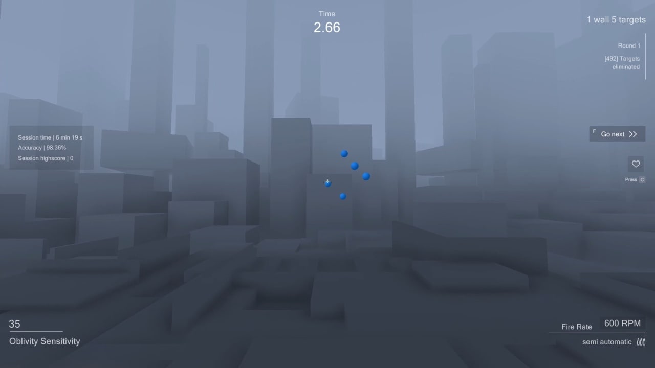 Oblivity - Find your perfect Sensitivity v Build 21518054 Новая версия Полная версия Последняя в альт. раздачах Дата выхода 24 мар. 2022 Разработчик Poly Games Жанр Экшены, Симуляторы, Инди, Шутеры Очень положительные на основе 1386 обзоров в Steam 83% Обновлено 26 января 2025, 14:09 Список изменений Oblivity - Find your perfect Sensitivity – полезная программа для нахождения максимально эффективной чувствительности мышки в зависимости от игры. Оно предлагает пройти несколько уровней с разными задачами, причем с каждым новым заданием меняется скорость реагирования. После получения данных, встроенный алгоритм сравнивает результаты и вычисляет оптимальный вариант для каждого конкретного геймера. После завершения тестового уровня можно пересмотреть его запись с точной временной разметкой. Это позволит выполнить работу над ошибками и понять, при каких условиях продуктивность падает. Встроенный конвертер позволит перенести настройки из большинства популярных шутеров от первого лица. Oblivity - Find your perfect Sensitivity также подойдет для быстрой проверки новоприобретенной мышки. Для таких тестов есть огромное количество сценариев, предлагающих всевозможные испытания на точность. Имеется и конструктор, позволяющий создать свое собственное. По завершению проверки приложение отобразит текущую статистику, выдавая максимум доступной информации. Помимо точности, скорости указателя и заработанных очков еще можно узнать, каково было отклонение от идеального результата, плавность прицела, перелет или недолет. Для удобства в настраиваемом меню можно изменить множество условий, начиная от вида прицела до любого внутриигрового цвета. Поддерживается множество вариантов разрешений экрана, соотношения сторон. Скачать торрент Скриншоты Показать больше Видео из игры Скачать Oblivity - Find your perfect Sensitivity Тип релиза Пиратка (Таблетка: Не требуется) Версия v 1.0 Размер 79.74 Мб Интерфейс Английский Озвучка Отсутствует Установка: Примечание Более актуальная версия: v Build 21518054находится в блоке - Альтернативные раздачи. Скачать .torrent торрент файл Скачать БЕЗ торрента прямая ссылка через uTorria Альтернативные раздачи Прямые ссылки Облачные хранилища v Build 21518054 88 МБ Показать Системные требования ОС: Windows 10 (64-bit) Процессор: Intel Core i3 Оперативная память: 4 GB Видеокарта: GTX 560 Место на диске: 200 МБ Шутер от первого лица, От первого лица, Набор очков, Приключенческий экшен, Обучение, Снайперство, Арена-шутер, Минимализм, Казуальная
