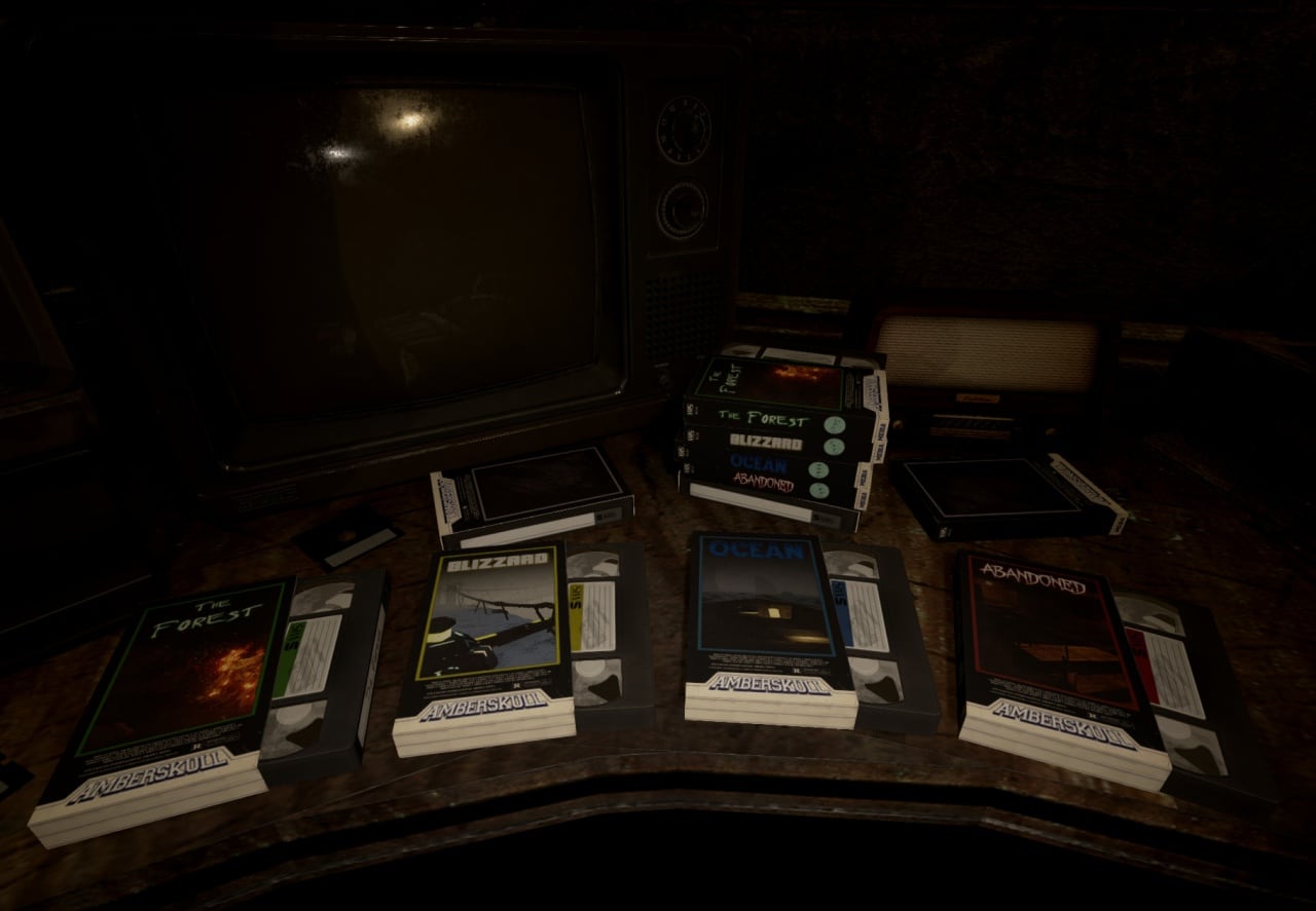 Amberskull - комплект из 4 независимых инди-хорроров с элементами выживания. В начале пользователю доступны потрепанные кассеты, после включения которых запускается выбранная сюжетная линия. Повествование ведется в магической виртуальной реальности, из которой можно выбраться только после выполнения задания. Основные действия происходят в таких локациях: