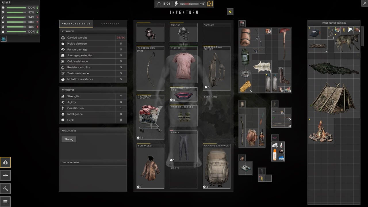 Также получится крафтить предметы, применяя изученные рецепты. Во время схваток, можно получить ранения (кровотечение, инфекция, повреждение конечностей и т.п.). Во время приключений придется следить за параметрами здоровья протагониста (гипотермия, усталость, жажда, голод, интоксикация, болезни) и его мутациями, что создают уникальные эффекты. На карте выйдет посетить поселения и города, где можно отдохнуть и подлечиться. В проекте присутствуют механики взлома, охоты, собирательства и разведки (маскировка и создание засад).