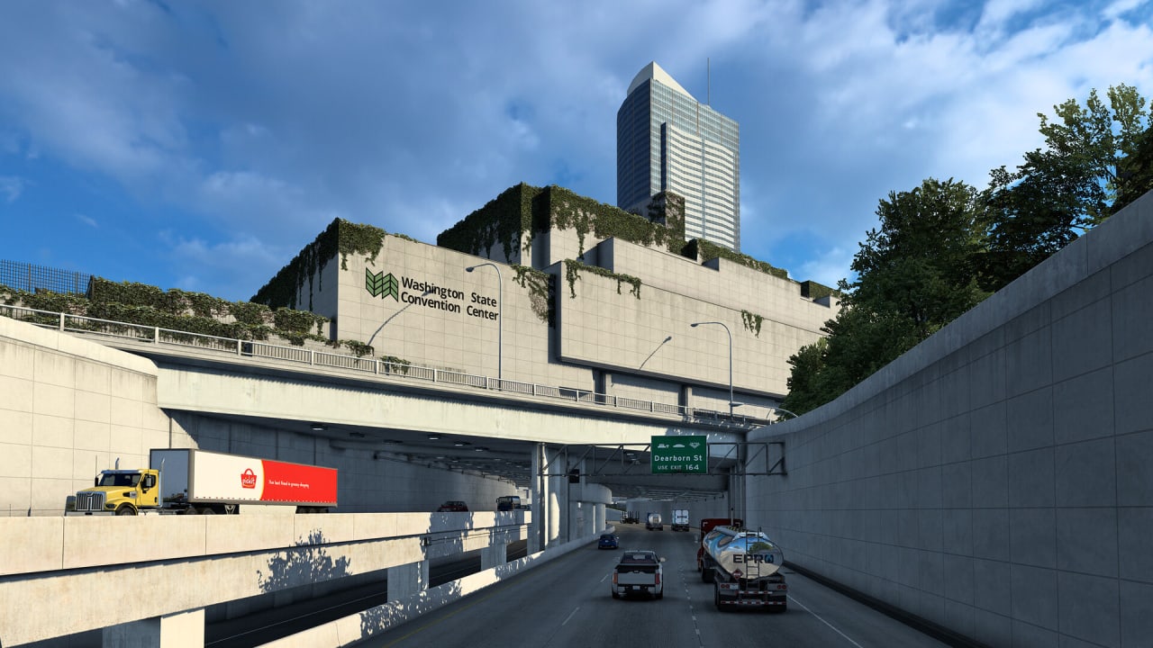 American Truck Simulator Washington переносит геймера в северно-западный район Америки. А именно, в штат Вашингтон. Также он известный под названием Вечнозеленый, потому что действительно, всегда пестрит буйством природных красок. Благодаря этому, можно будет попутешествовать по нему. Он занимает 13 место по численности населения, а также его можно назвать сердцем предприятий США, потому что именно здесь есть большинство заводов, которые производят мировые ресурсы и продукты. Штат работает постоянно – и днем, и ночью, являясь лидером по производству овощей и фруктов.