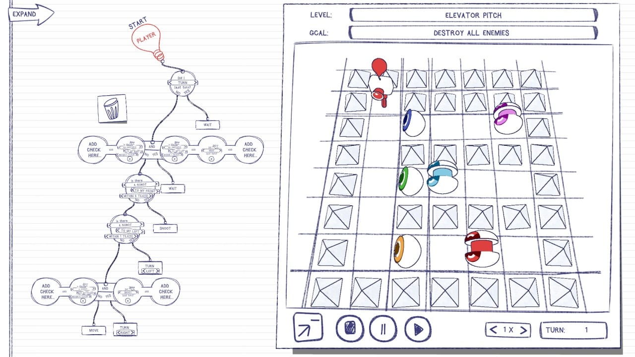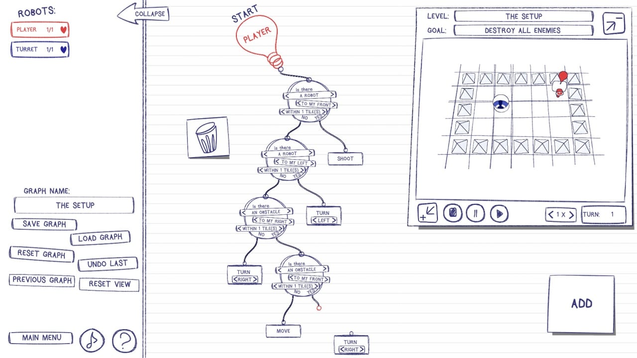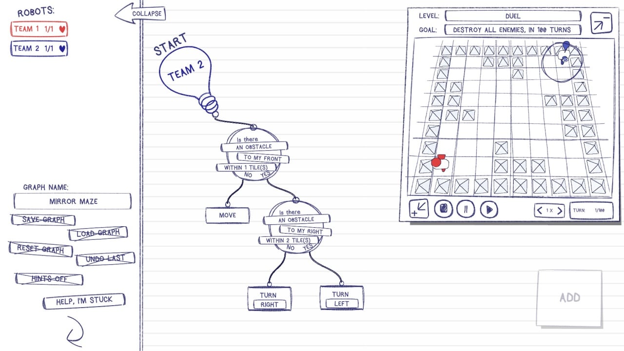 Sketchbots Полная версия Последняя Дата выхода 24 июн. 2021 Разработчик Feel Good OPG Жанр Стратегии, Инди Обновлено 26 января 2025, 14:03 Список изменений Sketchbots — оригинальная история, где геймеру предстоит управлять настоящим роботом. Проблема в том, что он не понимает привычные слова, человеческие жесты, двжиения и видит мир иначе. Его существование состоит только из алгоритмов и целых комплексов параметров. Для выполнения даже самого понятного действия придется создавать новые коды, чтобы робот мог двигаться и выполнять свои функции. Его предстоит провести из одной точки в другую. Для этого недостаточно давать команды или доступные подсказки, как в обычных детских играх. Придется стать начинающим программистом, пытаясь расширить мир механического друга и улучшить его способности распознавания окружающей среды. В Sketchbots даже в случае неудачи можно заново пересматривать сделанные алгоритмы. Там стоит обнаружить ошибку, которая привела к проигрышу и исправить ее. Такая система разрешает учиться на собственных провалах, чтобы в следующий раз сделать все идеально. С каждым уровнем программирование будет сложнее, как и лабиринты, которые нужно пройти. Предстоит почувствовать себя роботом и понять, что все способны воспринимать мир иначе, а самые элементарные действия для кого-то покажутся тяжелым испытанием. Важно внимательно отслеживать маршруты и прокладывать путь, выстраивая сложные, но понятные лабиринты и вырабатывая персональную тактику. Необходимо пробовать снова и снова, чтобы дойти до цели и выполнить задания. Скачать торрент Скриншоты Показать больше Видео из игры Скачать Sketchbots Тип релиза Пиратка (Таблетка: Не требуется) Версия (Полная) Последняя Размер 52.93 МБ Интерфейс Английский Озвучка Отсутствует Скачать .torrent торрент файл Скачать БЕЗ торрента прямая ссылка через uTorria Системные требования ОС: Windows 7, 8, 10 Процессор: Dual Core 2.0 GHz Оперативная память: 512 МБ Видеокарта: Intel HD 3000 Место на диске: 256 МБ Программирование, Головоломка, Вид сверху, Логика, Пошаговая тактика, Сложная, Перемещение по сетке, Пошаговые сражения, Образование, Обучение, Редактор уровней, Мультипликация, Рисованная графика, Минимализм, Тактика, Роботы, Хакерство