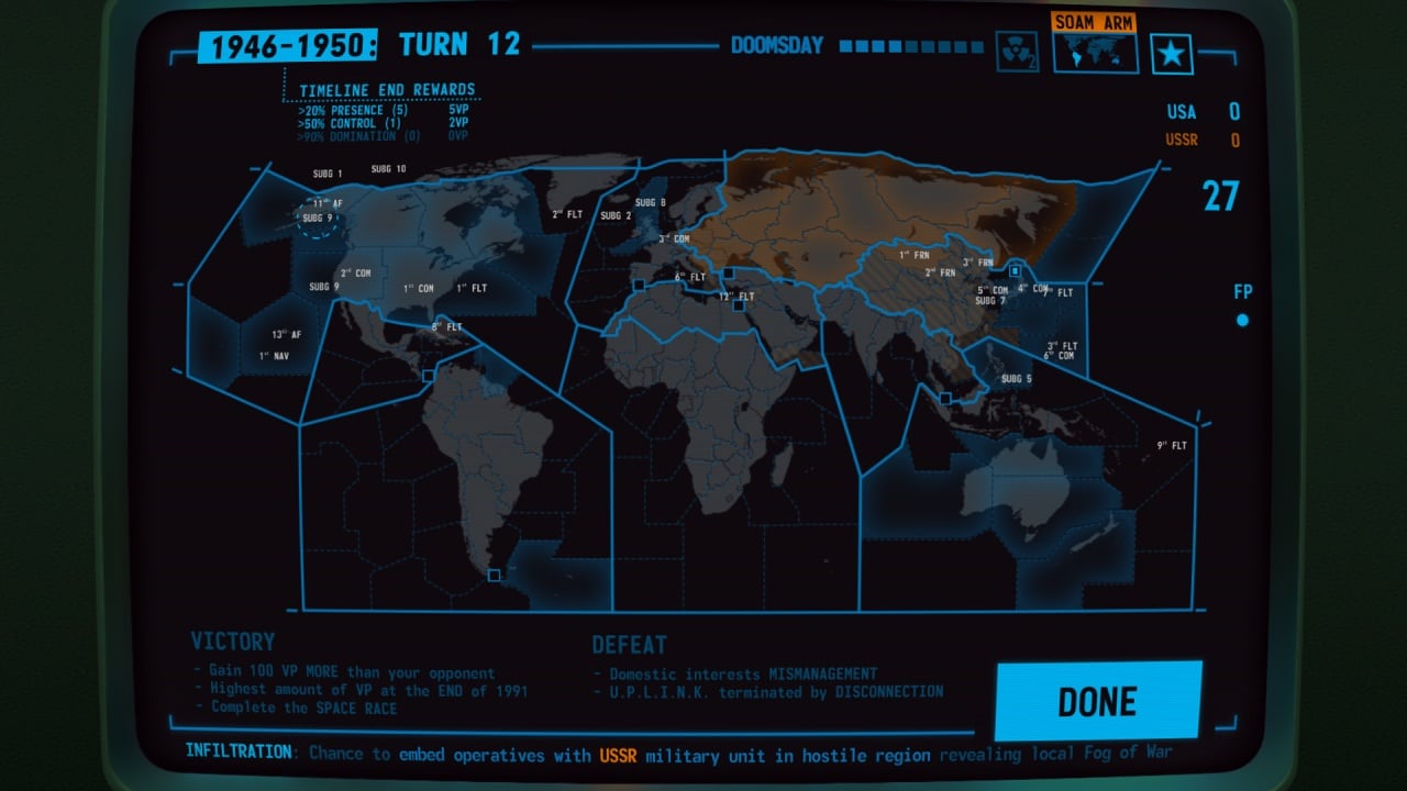 Terminal Conflict v Build 16398132 Новая версия Полная версия Последняя в альт. раздачах Дата выхода 24 сен. 2020 Разработчик Strategy Mill Жанр Симуляторы, Стратегии Смешанные на основе 63 обзоров в Steam 67% Обновлено 26 января 2025, 14:02 Список изменений Сюжет Terminal Conflict рассказывает о событиях, произошедших во временной промежуток с 1946 до 1991 годов. Это история о холодной войне, экономических, информационных и политических противостояний. Геймер пример участие в космической гонке и посоревнуется в скорости развития вооружения государства. Предстоит столкнуться с легендарными политическими лидерами разных стран: от Че Гевары до Тэтчер. У каждого из исторических персонажей есть уникальные навыки — их стоит использовать для сохранения мира на планете и во избежание полномасштабной ядерной войны. В Terminal Conflict предстоит принимать участие в военных действиях и руководить силами разведки. Необходимо выстраивать дипломатические отношения и поддерживать экономику государства. В симуляторе присутствует компьютер с искусственным интеллектом по имени Мирвин — он поможет принять правильные решения и даст ценные советы. В политике важно учитывать все факторы, чтобы избежать использования ядерного оружия и не допустить развязывание настоящей войны. Необходимо выстроить грамотную политическую стратегию, чтобы утвердиться на мировой арене. Нельзя допускать провокации, исключать необдуманные решения и победить в серьезном противостоянии государств. На плечах героя большая ответственность за сохранность всей планеты. Стоит тщательно продумать тактику, заручиться поддержкой партнеров и привести мир к благополучию без смертельных угроз. Скачать торрент Скриншоты Показать больше Видео из игры Скачать Terminal Conflict Тип релиза Пиратка (Таблетка: Не требуется) Версия v 28.10.2021 Размер 240 МБ Интерфейс Английский Озвучка Английская Примечание Более актуальная версия: v Build 16398132находится в блоке - Альтернативные раздачи. Скачать .torrent торрент файл Скачать БЕЗ торрента прямая ссылка через uTorria Альтернативные раздачи Прямые ссылки Облачные хранилища v Build 16398132 450 МБ Показать Системные требования ОС: Windows 7, 8, 10 (64 бита) Процессор: Intel® Pentium® IV 2.4 GHz / AMD 3500+ Оперативная память: 2 ГБ Видеокарта: NVIDIA GeForce 8800 / ATI Radeon X1900 Место на диске: 2 ГБ Война, Политический симулятор, Ретро, Глобальные стратегии, Пошаговые стратегии, Военные конфликты, Игры в 2D, Военные действия, Бой, Историческая, Иммерсивный симулятор