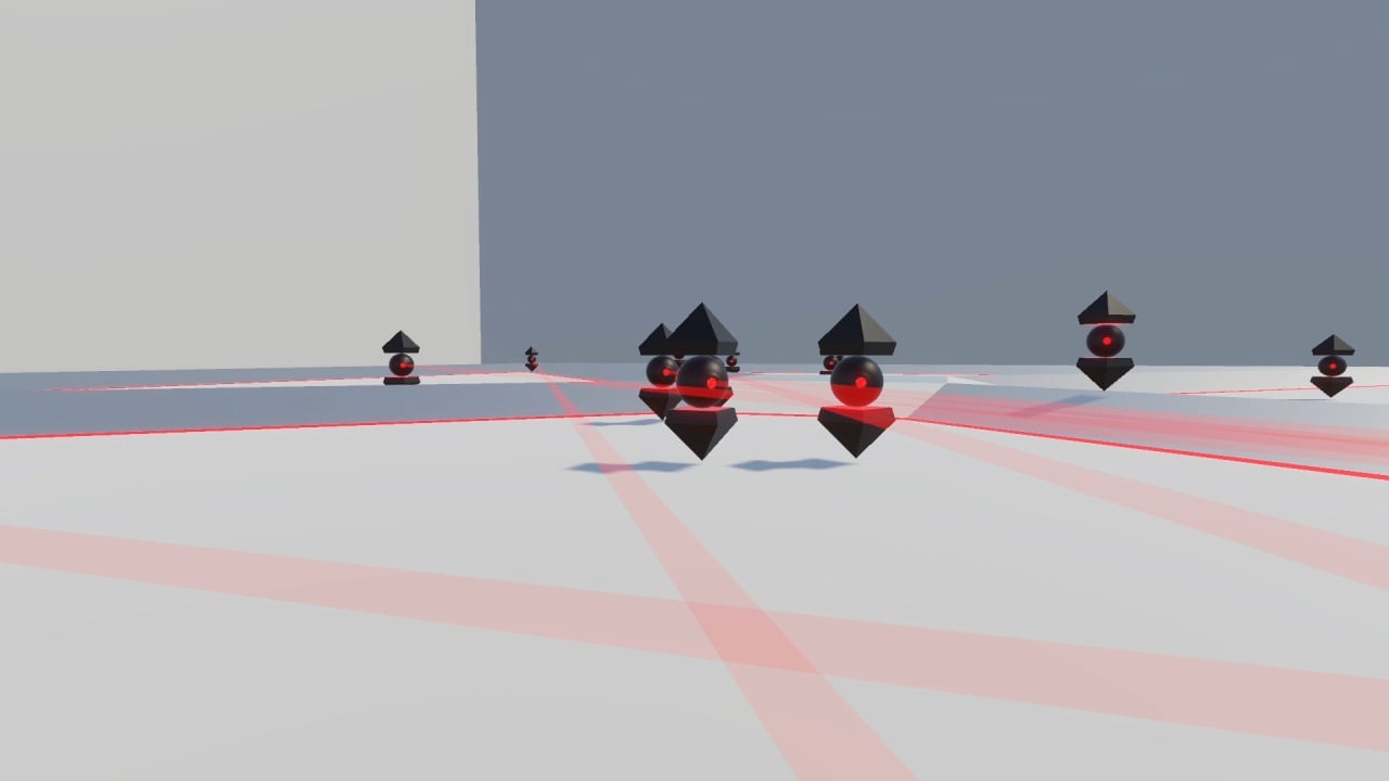 В Poly понадобиться сражаться. Для этого есть несколько типов оружия. Можно выбрать тот, который наиболее подходит, согласно предпочтениям и стилю игры. Кроме того, также будут разного рода монстры. Точнее, это роботизированные существа, которые весьма враждебно настроены к протагонисту. Они будут бежать на него целой армией, а еще запугивать красными лазерами из специальных отверстий, которые способны сделать в персонаже дыру. Для того, чтобы перейти на следующий этап, необходимо победить всех недругов на уровне.