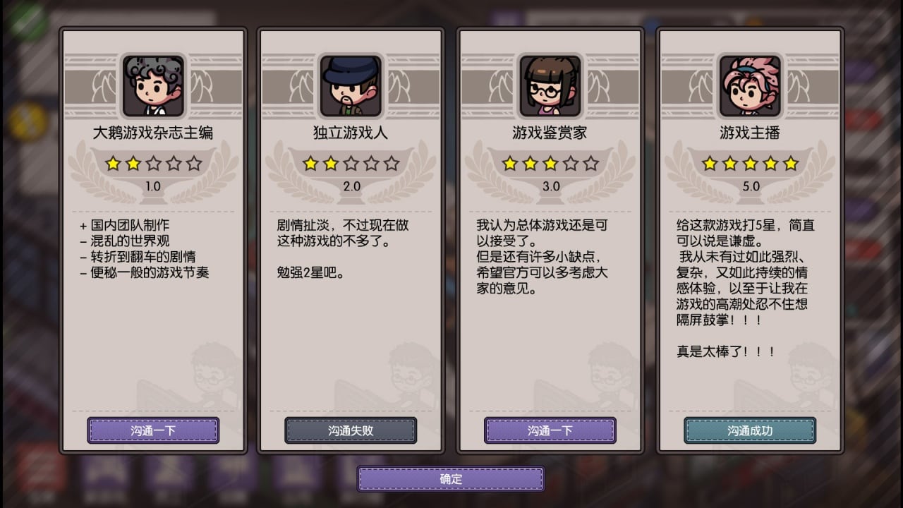 Chinese Game Company Simulator Дата выхода Скоро выйдет Разработчик Bear & Cat Studio Жанр Симуляторы, Стратегии Торрент ожидается Добавьте в избранное, чтобы следить В Chinese Game Company Simulator пользователю предлагают попробовать свои силы в создании и развитии предприятия, которое работает в индустрии создания игры. В этом случае придется выдержать жесткую конкуренцию. Ведь на рынке представлено уйма компаний и корпораций, которые работают в этой сфере. Рынок переполнен продуктами разного качества. В таких условиях необходимо быть в курсе новых тенденций. Ведь обстоятельства и направления постоянно меняются. Здесь можно ежеминутно получить неприятные сюрпризы. Например, при подготовке релиза даты выхода, в сети уже гуляет информация о продукте. В Чайнис Гейм Компани Симулятор игроку придется начинать с самых простых приложений. При этом разработка и тестирование будет проходить в небольшом офисе, практически в домашних условиях. На первоначальных этапах даже придется заниматься производством плагиата. Но при правильном подходе к делу, ориентации на конечных потребителей, можно вырасти в солидную и узнаваемую компанию. В первую очередь следует уделять внимание сотрудникам организации. Необходимо организовывать совещания, где будут решаться вопросы по поводу сюжета, музыкального оформления, общего дизайна. Кроме этого главную составляющую играют покупатели. В этом случае следует узнавать их запросы путем проведения опросов, исследований, организацией выставок. Перед выходом нового продукта нужно проводить массированную рекламную компанию, с привлечением всех средств продвижения. В случае успеха не нужно почивать на лаврах. Стоит сразу заниматься новыми разработками. Только таким способом можно остаться на вершине. Скачать торрент Скриншоты Скачать БЕЗ торрента прямая ссылка через uTorria Системные требования ОС: Windows 7, 8, 10 (64 бита) Процессор: 2.50GHz Оперативная память: 4 ГБ Видеокарта: HD4400 Место на диске: 2 ГБ Партийная RPG, Тайм-менеджмент, Симулятор жизни, Игры в 2D, Цветастая, Стилизация, Менеджмент, Экономика, Крафтинг