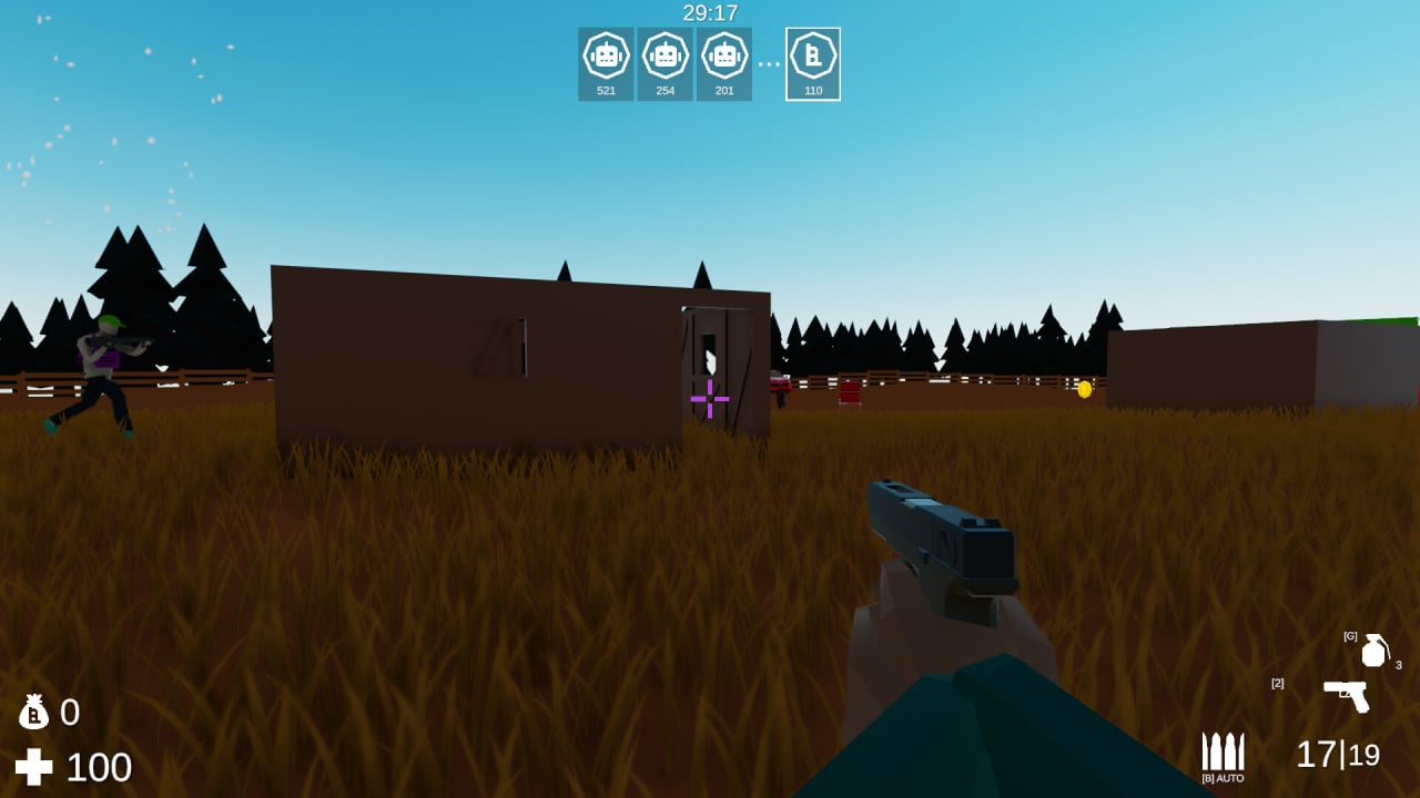 Bounters – многопользовательский шутер с красивой низкополигональной графикой высокого разрешения, в рамках которого геймеры станут сражаться в классических матчах на смерть. Здесь полностью отсутствуют элементы командного боя – каждый пользователь здесь сам за себя, а потому не стоит ждать прикрытия или помощи от союзников. Каждый встреченный персонаж на карте способен всадить пулю в спину. Главная задача в прохождении – зарабатывать деньги, путем убийств других игроков.