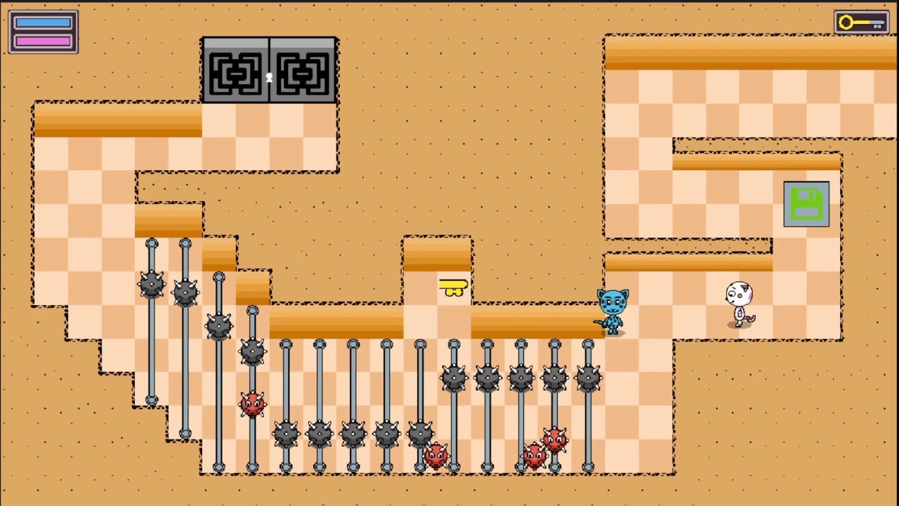 - Передвигаться с инвертированным контролем, наблюдая за двумя персонажами и учитывая опасности в коридорах.