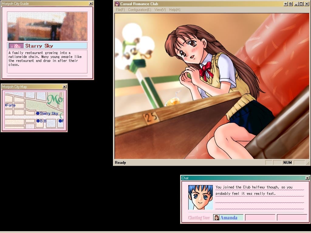 Casual Romance Club - L'Etude de l'Amour Полная версия Последняя Дата выхода 2003 Разработчик Libido and QT-Software Жанр Аниме Обновлено 26 января 2025, 13:31 Список изменений Главный герой Casual Romance Club - L'Etude de l'Amour учится в школе на последних курсах. Как и любой юноша, он жаждет романтических отношений и любви. Для достижения этой мечты он вступает в романтический клуб. Для его участников организовываются свидания с красотками. Поэтому молодой человек с радостью берет участие в этом проекте. Придется пообщаться с 12 милашками, такими как Клэр, Аманда, Валери, Шарлотта и другие. Каждая из них имеет свою исключительную внешность, черты характера, темперамент. Они также находятся в поисках второй половинки. С каждой придется провести ограниченное количество времени, побеседовать. Что дает возможность понять, возникла ли симпатия. Это может перерасти в романтические и интимные отношения. При этом главная задача - соблазнить максимальное количество девчонок. Пользователю в Casual Romance Club предстоит: Наблюдать за событиями – увидеть, как развиваются отношения между молодыми людьми. При этом следует учитывать, что юноша не искушен в любовных делах, имеет минимальный опыт общения с противоположным полом. Участвовать в диалогах – действие главным образом построено на разговорах между участниками. Игрок принимает в этом активное участие. Требуется определяться с репликами и фразами, чтобы вызвать интерес у собеседницы. Стараться очаровать девушек – поступками и слова необходимо перейти от стадии знакомства к более близким отношениям. Активно действовать – все решения влияют на развитие сюжетной линии и определяют концовку игры. Скачать торрент Скриншоты Скачать Casual Romance Club - L'Etude de l'Amour Тип релиза Лицензия (Таблетка: Не требуется) Версия (Полная) Последняя Размер 1.42 ГБ Интерфейс Английский Озвучка Японская Скачать .torrent торрент файл Скачать БЕЗ торрента прямая ссылка через uTorria Системные требования ОС: 95 / 98 / 2000 / ME / XP / Vista / 7 Процессор: 500 MHz Оперативная память: 128 МБ Место на диске: 1.5 ГБ Нагота, Решения с последствиями