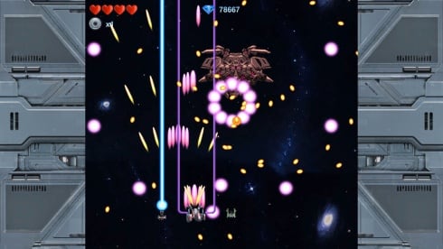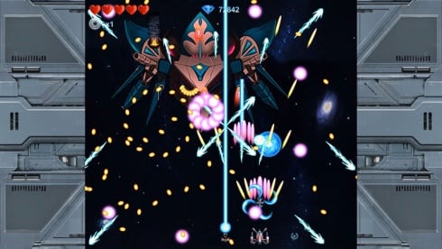 Помимо корабля протагониста на экране на фоне звездного неба будут отображаться противники, иконки улучшений и анимации смены локаций. Во время сражения интерфейс показывает число оставшихся жизней, количество собранных алмазов и уровень улучшения оружия. Также в меню перед вылетом удастся выбрать босса, который появится на карте к концу задания и каким арсеналом он будет обладать.