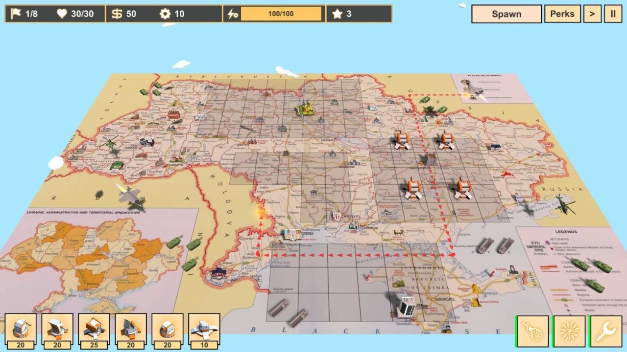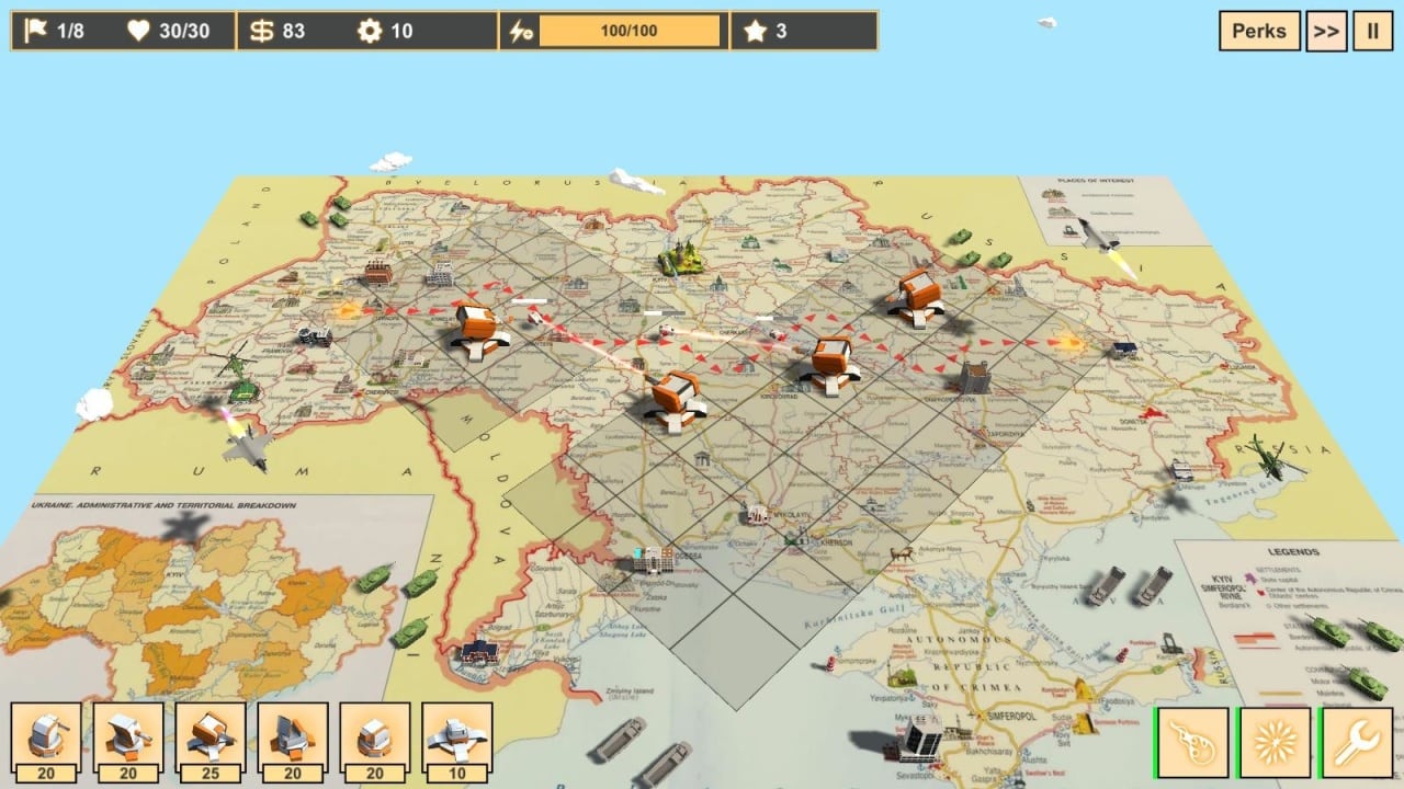 Protect Ukraine основывается на системе строительства обороны. Стратегия и тактика игрока повлияет на успех каждой миссии. Основная задача в прохождении – защитить Украину и удержать жизненно важны позиции, сражаясь с кровожадными противниками. Классический жанр башенной защиты предлагает игроку устанавливать сооружения рядом с дорогой, по которой двигаются враги. Необходимо не дать противникам перейти защитную линию.