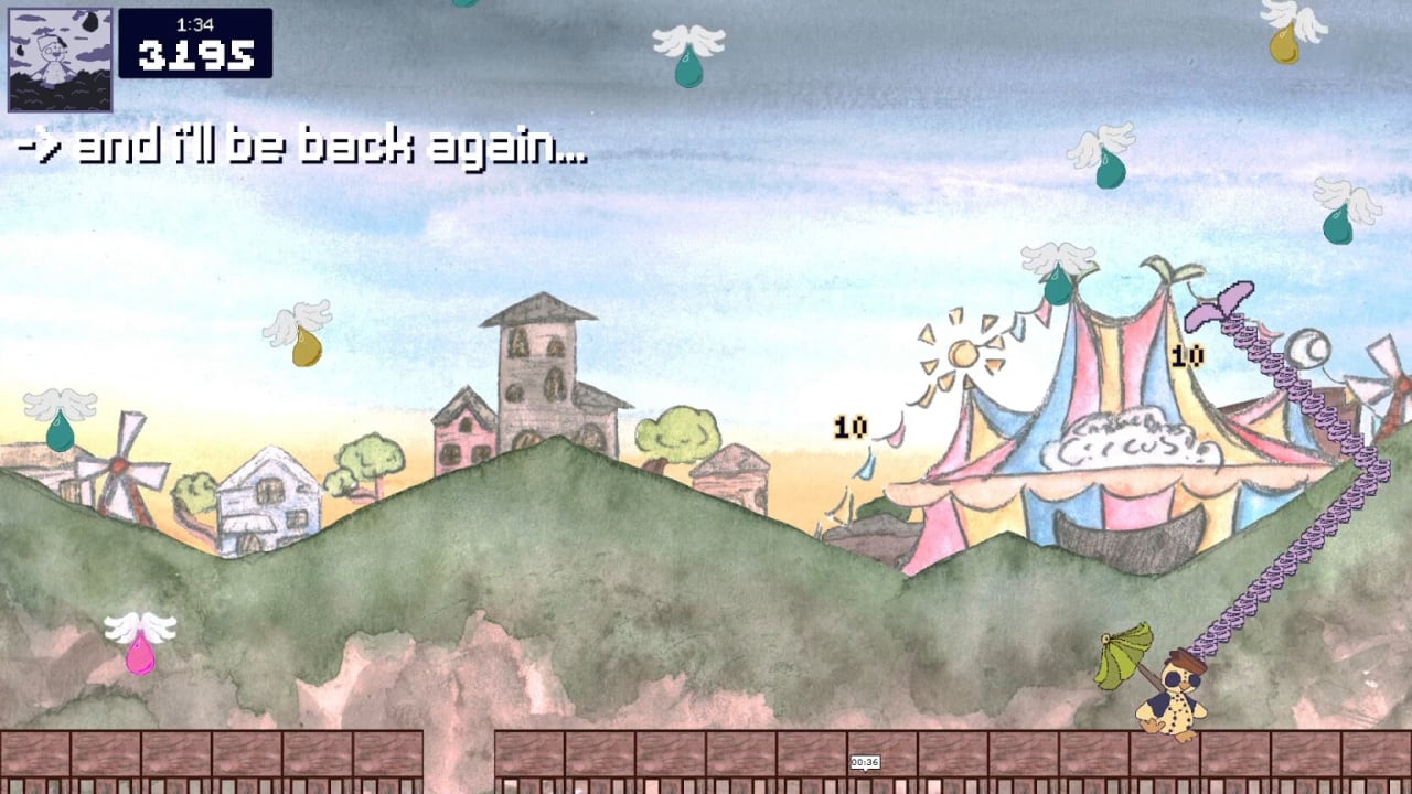 Когда приходит ночь, игроку потребуется следить за нестандартными каплями дождя, способными восстанавливать уничтоженную землю, увеличивать скорость и давать странные сведения и послания. Геймплей поддерживает только одиночный режим в стиле кампании, где пользователь получает определенные задания для выполнения и локации для исследования. Некоторые капли дождя дают особые навыки центральному персонажу, что помогает выполнять задачи.Главные геймплейные особенности: