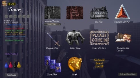 В игровом процессе представлен банк, кузницу, магазин карт и разнообразные процедурно генерируемые элементы. Очки способностей необходимы для их траты в Учебном центре, что помогает прокачивать новые таланты и улучшать имеющиеся навыки центрального персонажа. Каждый уровень имеет уникальный дизайн, саундтрек на заднем плане и врага со своими особенностями и экипировкой.