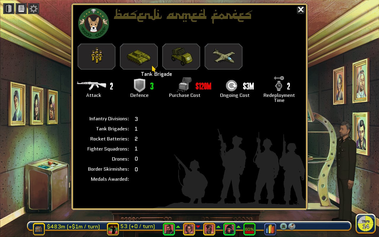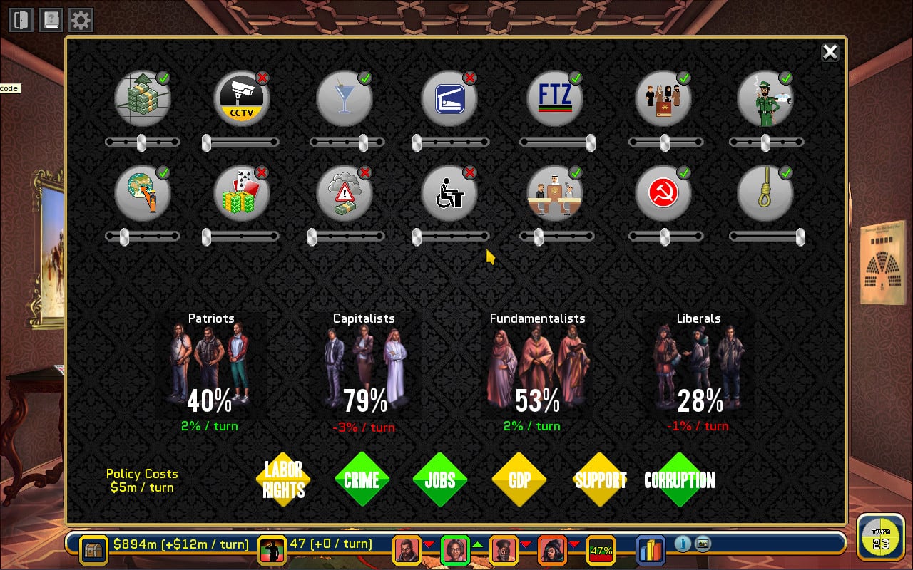 Rogue State v 1.33 Новая версия Полная версия Последняя Дата выхода 16 окт. 2015 Разработчик LRDGames, Inc. Жанр Стратегии, Симуляторы, Инди В основном положительные на основе 192 обзоров в Steam 75% Обновлено 24 марта 2025, 20:30 Список изменений В Rogue State игрок попадает в непростую ситуацию. Ему предстоит принять контроль над государством Центральной Европы, которое совсем недавно оклемалось от революции. Принимая решения касательно пути развития, формируя альянсы и способствуя развитию экономики, пользователь будет делать все для того, чтобы его государство было на шаг впереди других. При этом, уже с самого начала проект дает понять, что главный герой - настоящий правитель. У него есть собственный кабинет, обставленный должным образом (с флагами и прочими национальными символами). Также, рядом с ним всегда находятся советники, которые дают рекомендации касательно вектора развития государства. Rogue State показывает, насколько важно найти баланс между внутренней и внешней политикой. В один момент герой обсуждает условия соглашения с соседними государствами, а уже несколько мгновений спустя решает проблемы национальных меньшинств, не допуская государственных переворотов или недовольства граждан. Важен любой аспект, который касается качества жизни. Даже если жителей не удовлетворяет качество дорог, это не должно остаться без внимания, иначе в будущем из этого сформируется глобальная проблема. Но при этом, пользователь не должен идти на поводу у кого-либо. Он - последняя инстанция в государстве и только он принимает решения, балансируя между диктатурой и демократией. Но ничто не мешает брать пример со сверхдержав вроде Китая или США. Что касается визуальной составляющей, то весь проект выполнен в стиле комиксов, вдохновленный работами Жана Жиро. Скачать торрент Скриншоты Показать больше Видео из игры Скачать Rogue State Тип релиза RiP (Таблетка: Не требуется) Версия v 1.33 (Полная) Последняя Размер 1.02 ГБ Интерфейс Английский Озвучка Английская Установка: Скачать .torrent торрент файл Скачать БЕЗ торрента прямая ссылка через uTorria Системные требования ОС: 10, 8, 7, Vista, XP Процессор: 1.6 GHz Оперативная память: 512 МБ Видеокарта: 32-bit SVGA Video card Место на диске: 1200 МБ Политический симулятор, Экономика