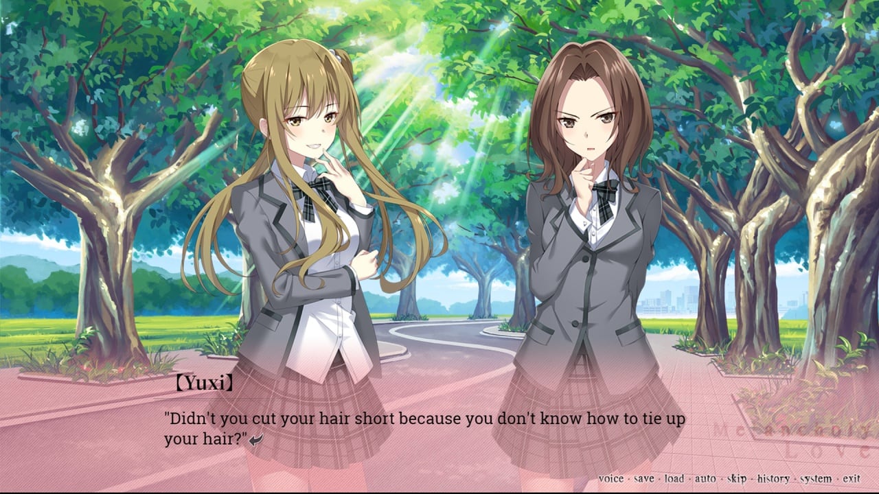 Melancholy Love Полная версия Последняя Дата выхода 29 янв. 2021 Разработчик White Dew Games Жанр Визуальная новелла, Аниме, Инди, RPG, Приключения Очень положительные на основе 61 обзоров в Steam 93% Обновлено 6 февраля 2025, 01:05 Список изменений Melancholy Love - визуальный роман об отношениях двух учениц школы для девочек. Проект затрагивает такие темы, как - школьная травля, давление со стороны коллектива и властных родителей, выбор отказа от мечты, чтобы быть как все. Главные героини - на первый взгляд, полные противоположности. Одна - президент школы, кумир для учащихся и идеальный ученик. Другая - хулиганка, которую все избегают и терпеть не могут. Тем не менее, девушки начинают сближаться, ощущая в друг друге родственные души. Смогут ли они реализовать свои желания или так и останутся пленниками навязанных ярлыков - зависит от играющего.Основные персонажи новеллы таковы: Мяньсюэ - ученица, имеющая славу заядлой школьной хулиганки. Окружающие ее боятся, считая оторвой и стервой, но на самом деле Мяньсюэ - добрая и романтичная девочка. Она отказывается подыгрывать обществу, что вкупе с вечно нахмуренным лицом и одним трагическим инцидентом создало ей отрицательную репутацию. Цяньсюнь - главная отличница класса, одна из лучших учеников школы. Дочь очень властных и строгих родителей, привыкшая носить маску идеальной девочки. Только ночами она позволяет себе покататься на скейтборде, дав волю истинным желаниям и эмоциям. В Melancholy Love реализовано 3 концовки. Их определяют выборы, которые совершает пользователь во время диалогов персонажей. Это побуждает внимательно следить за словами героинь. Ведь неправильно выбранная фраза легко может привести к тому финалу, который игроку не понравится. В остальном сюжет является линейным - незначительные выборы могут повлиять только на второстепенные события. В новелле много драматических моментов и центральное место отведено романтике. Скачать торрент Скриншоты Видео из игры Скачать Melancholy Love Тип релиза Пиратка (Таблетка: Не требуется) Версия (Полная) Последняя Размер 1.81 ГБ Интерфейс Английский Озвучка Отсутствует Скачать .torrent торрент файл Скачать БЕЗ торрента прямая ссылка через uTorria Системные требования ОС: Windows 7, 8, 10 Процессор: Dual Core 2.0 GHz Оперативная память: 2 ГБ Видеокарта: Intel HD 3000 Место на диске: 1 ГБ Протагонистка, Романтика, Несколько концовок, Эмоциональная, Решения с последствиями, Драма, Глубокий сюжет, Выбери себе приключение, Повествовательная, Игры в 2D, Нагота